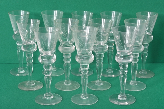 689. 12 st Snapsglas, Gustav III monogram
