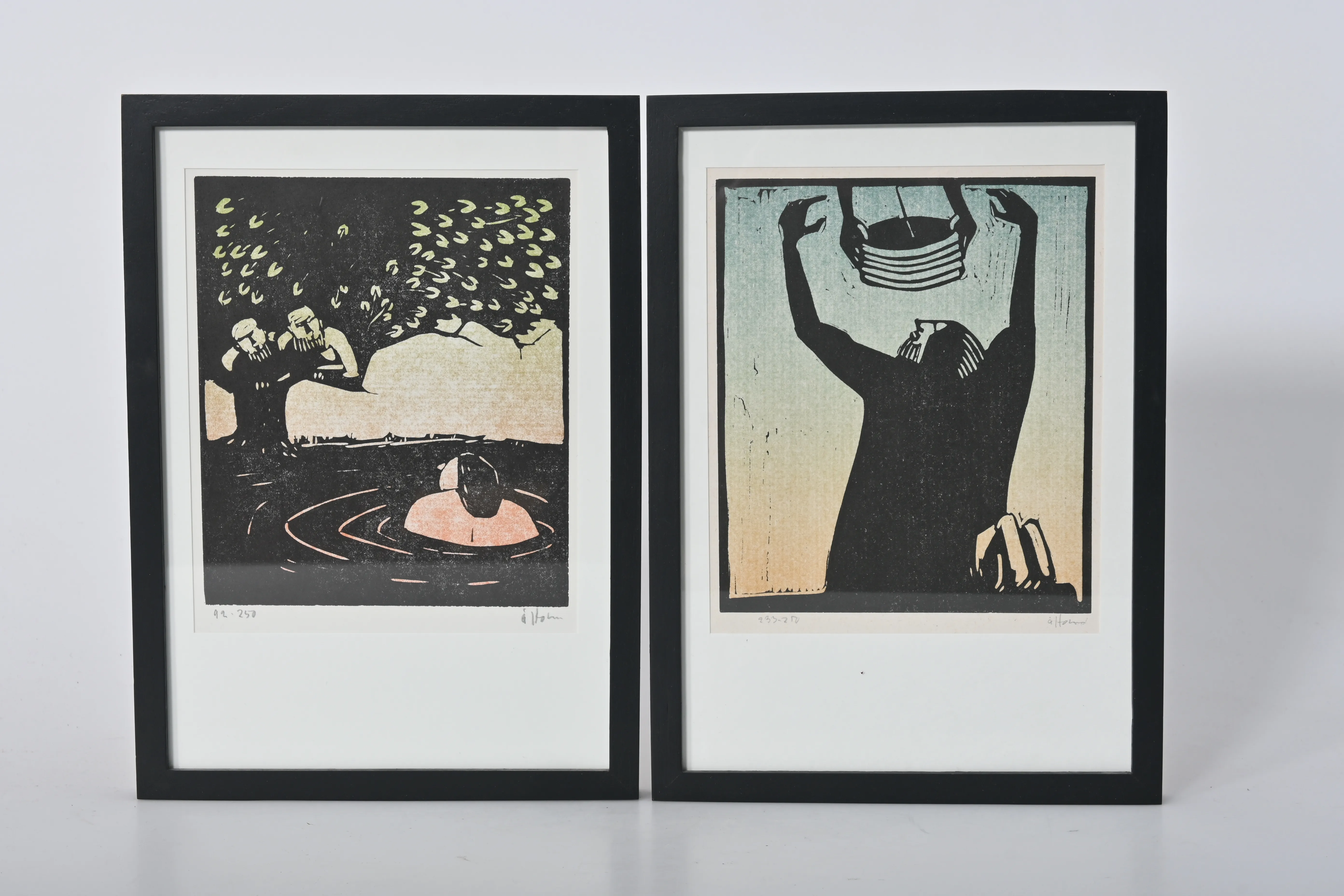 3216. 2 st Åke Holm, Lineoleumsnitt