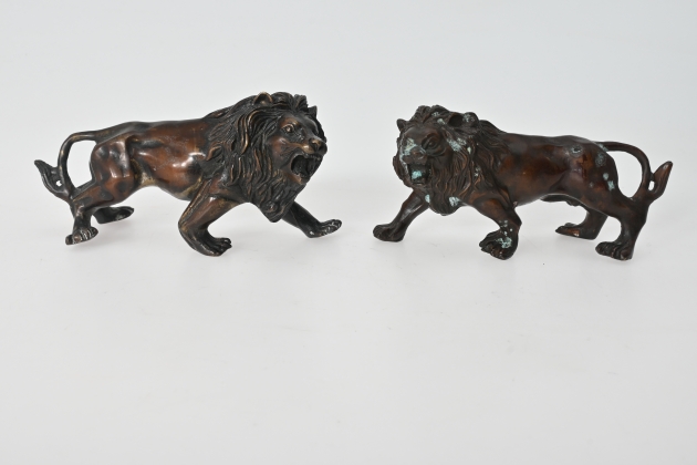 523. 2 st Bronsskulpturer Lejon