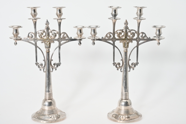 654. 2 st Kandelabrar, Nysilver