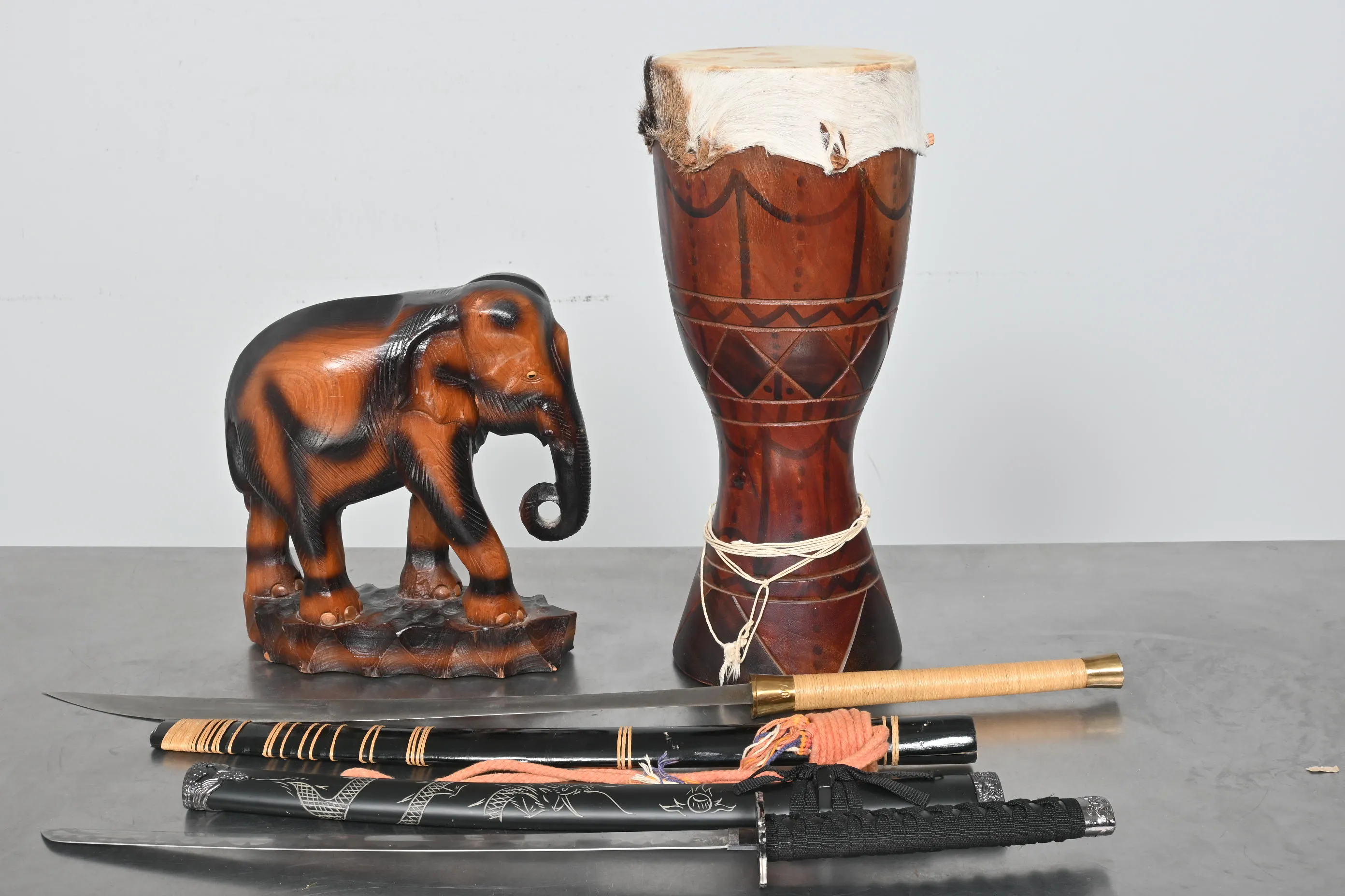 2160. 2 st Samurajsvärd, Elefant, Trumma