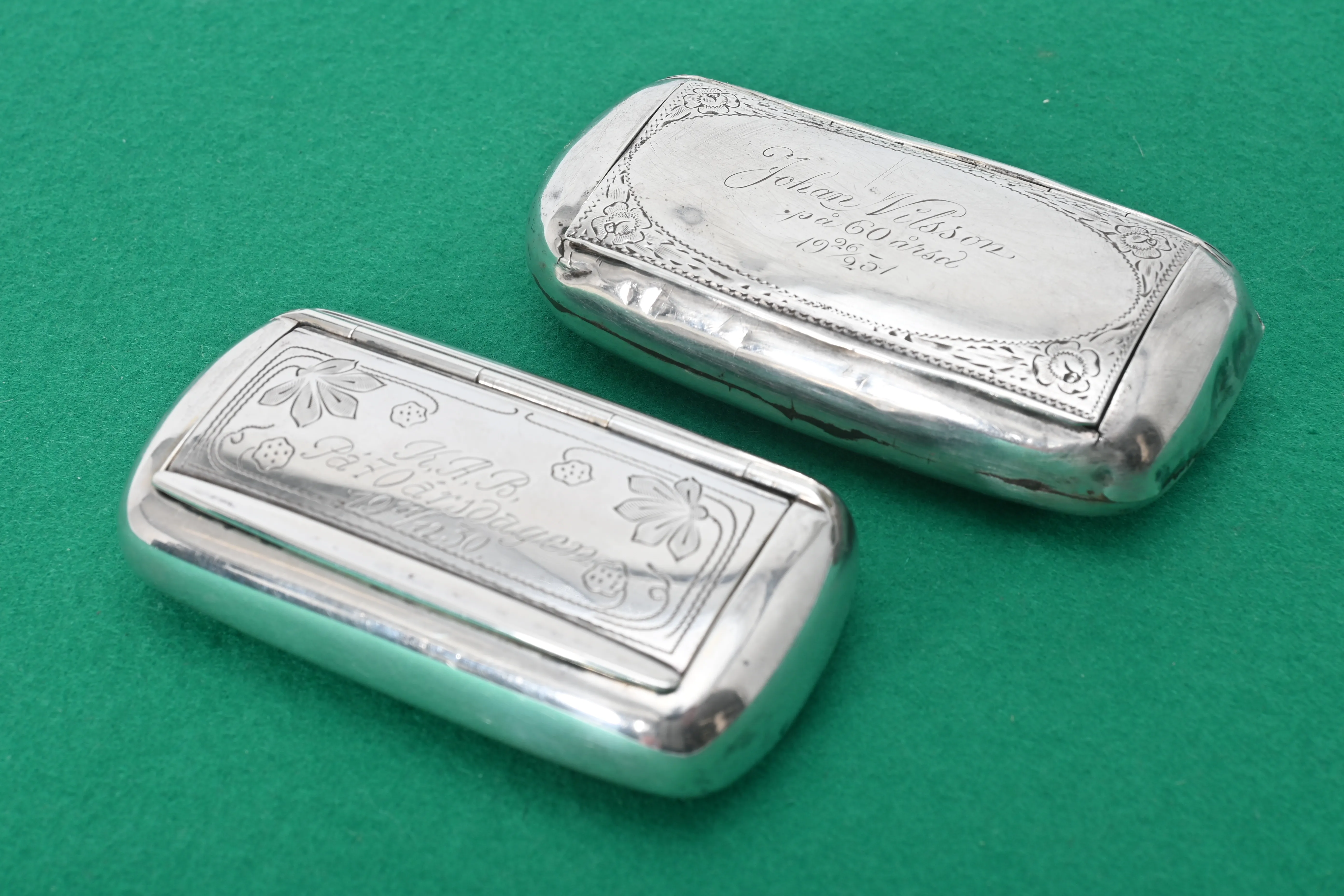 799. 2 st Snusdosor silver ca 129 gr