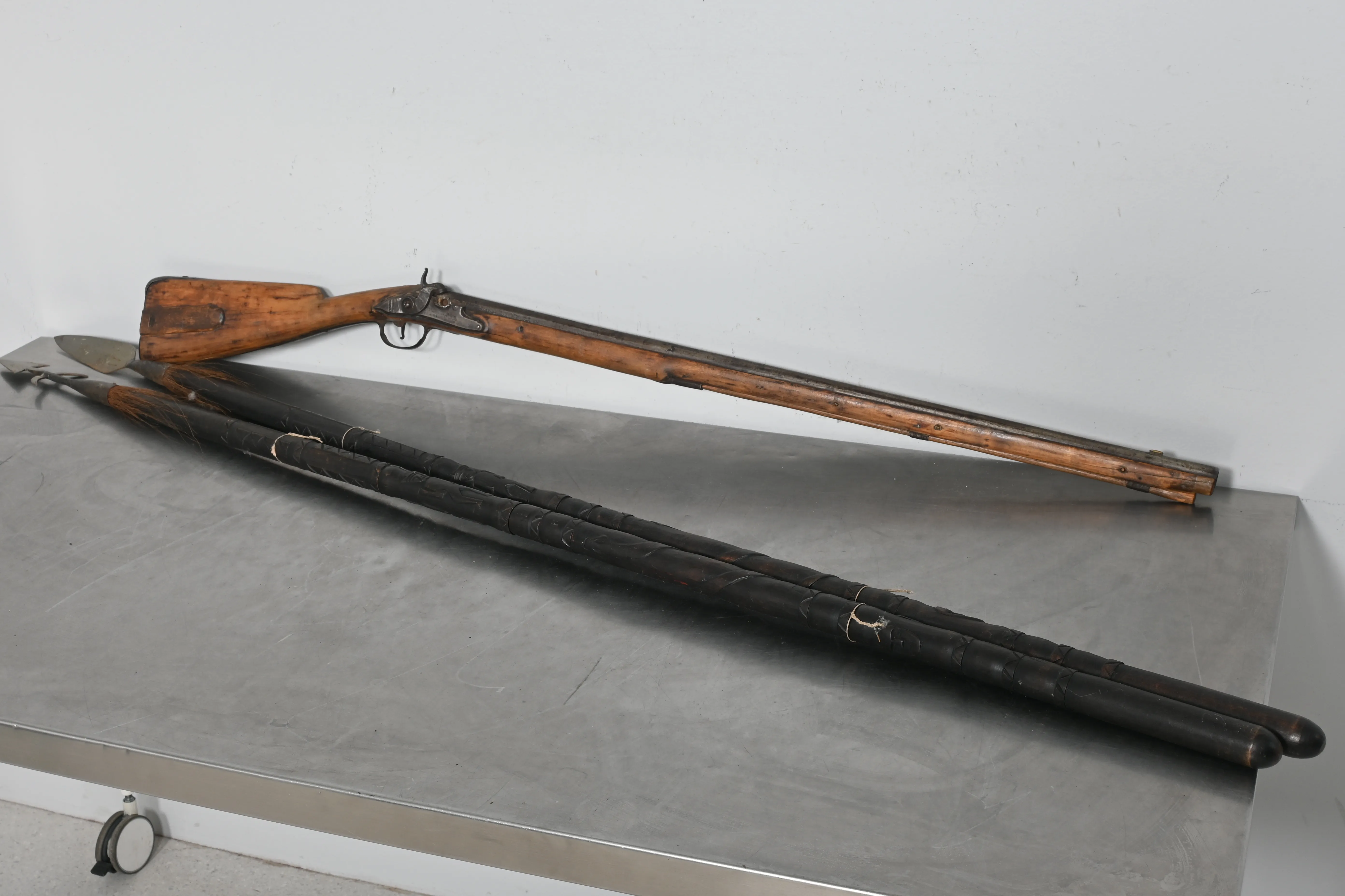 3280. 2 st Spjut o 1 st Slaglåsgevär