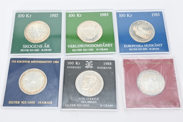 2516. 6 st 100 kr, 1983, 1984, 1985, 1988