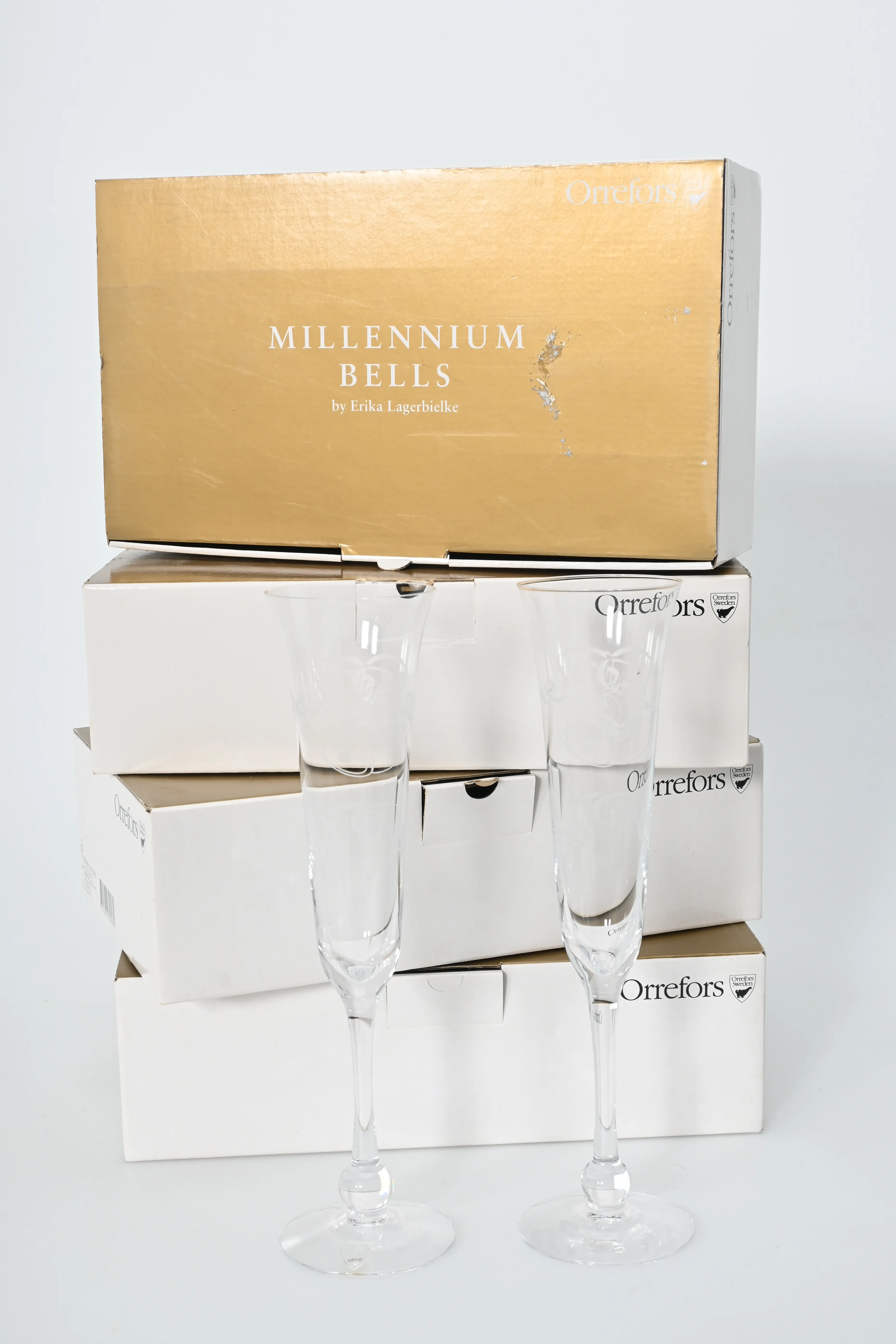 680. 8 st Champagne glas Millenium Bells, Orrefors, Erika Lagerbielke