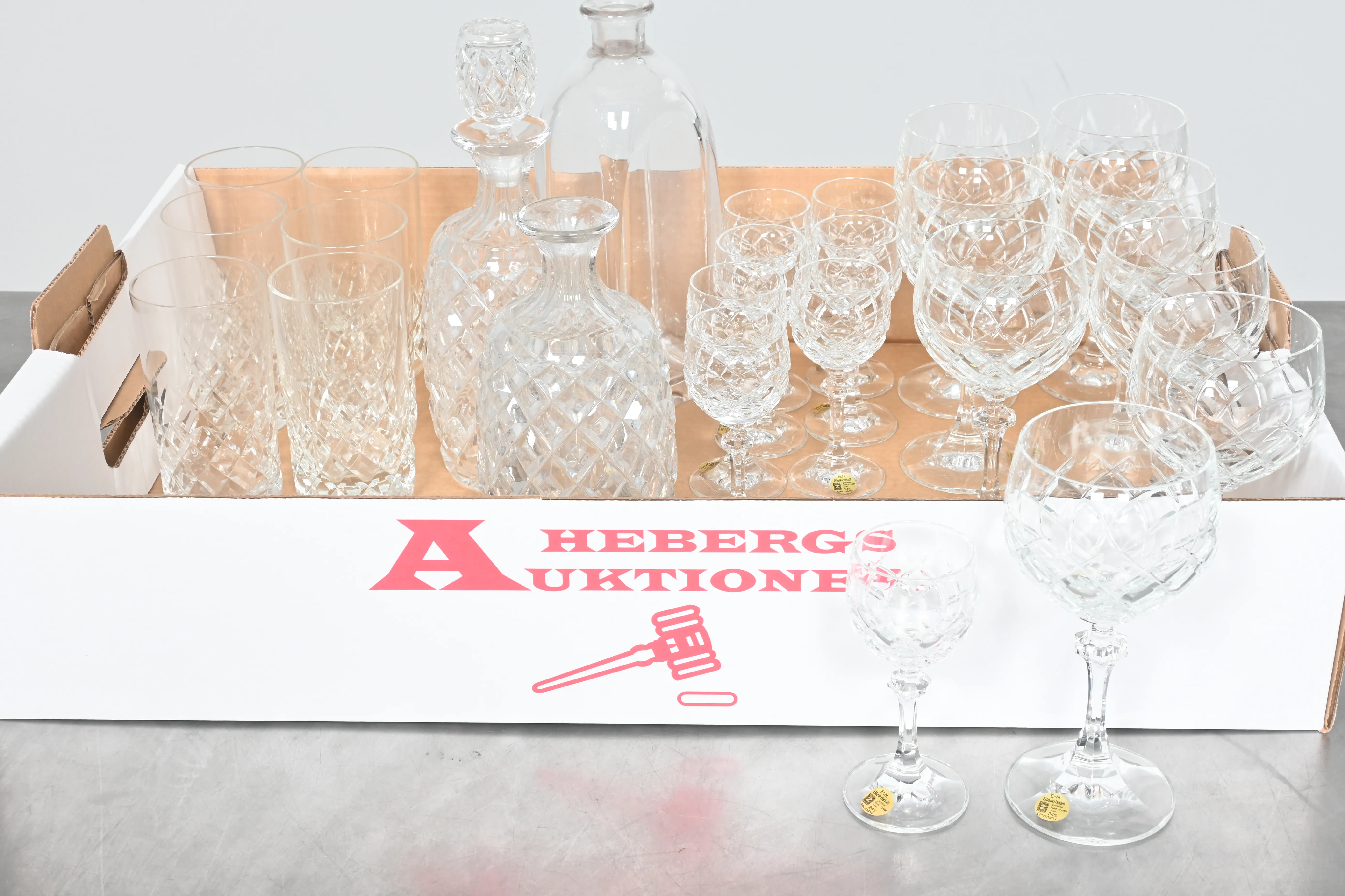Visning: Torsdag 22/1 Kl 16-19 Lördag 24/1 11-14. Utlämning Söndag 25/1 13:00 till 19:30 Måndag 26/1 8-12 och 14-18 Tisdag 27/1 8-12 och 14-16____________________________________________________________________________________________________________________________________________________________________________________________________________- Lägsta möjliga bud är 100 kr. På alla klubbade priser tillkommer Köparprovision 10% och slagavgift på 40 kr per objekt (inklusive moms). Vissa konstföremål kan vara belagda med konstnärsavgift, s.k. Droit de Suite eller följerätt. Betalning och avhämtning av inropade objekt måste ske söndag eller måndagen efter auktionen. Magasineringsavgift kan tillkomma på föremål som inte avhämtas inom angiven tid. Föremål som är betalda och inte hämtade inom två månader skänkes till Lions eller säljes, överskottet efter lagringskostnad skänks till välgörande ändamål. Föremål som säljs på auktion är begagnade och säljs i befintligt skick. Det ankommer på köparen att undersöka föremålen och förvissa sig om skicket. Betalning Du kan betala med kort på "Mina Sidor" via din internetbank, eller med Swish, ange alltid kundnummer. Objektsbeskrivning Objektens beskrivning återspeglar Hebergs Auktioner uppfattning om objekten. Hebergs Auktioner ansvarar inte för skador som förbigåtts vid besiktningen. Hebergs Auktioner ansvarar inte för eventuella felaktigheter i katalogtexten. Bilder i katalogen är till för identifierings- syfte och återspeglar inte nödvändigtvis objektens kondition. Ändringar i katalogtext kan förekomma efter att katalogen tryckts/publicerats. Sent inkomna ändringar meddelas muntligen vid försäljningstillfället. Ur och tekniska föremål säljs som samlarföremål och Hebergs Auktioner kan inte garantera att de är i fungerande skick. Köparens undersökningsplikt gäller. Om Hebergs Auktioner efter begäran från köparen har lämnat en konditionsrapport om ett föremåls kondition skall uppgifterna endast behandlas som vägledning för köparen och befriar inte köparen från dennes undersökningsplikt. Lagen om 14 dagars ångerrätt vid auktionsköp gäller inte här där du har möjlighet att lämna bud på plats. Det framgår av distans- och hemförsäljningslagen ___________________________________________________________________________________________________________________________________________________________________________________________________________________________ Vi kan skicka mindre föremål som inte är ömtåliga med postnord det är postnords prislista över disk som gäller plus moms. Vi skickar inga möbler, tavlor, porslinsföremål, glasföremål m.m