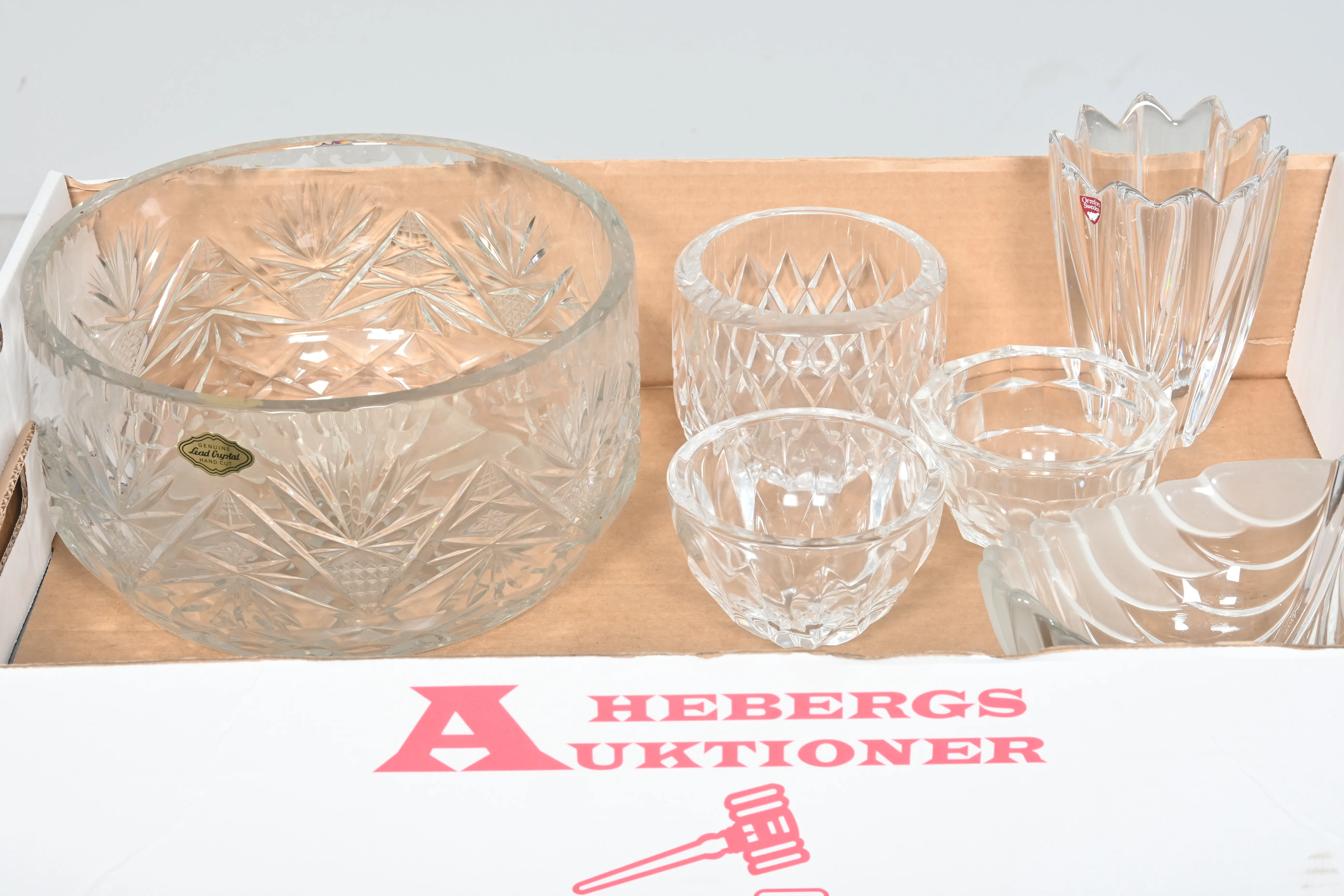 Visning: Torsdag 26/3 Kl 16-19 Lördag 28/3 11-14. Utlämning Söndag 29/3 ca 13:15 till 19:30 Måndag 30/3 8-12 och 14-18 Tisdag 31/3 8-12 och 14-16____________________________________________________________________________________________________________________________________________________________________________________________________________- Lägsta möjliga bud är 100 kr. På alla klubbade priser tillkommer Köparprovision 10% och slagavgift på 40 kr per objekt (inklusive moms). Vissa konstföremål kan vara belagda med konstnärsavgift, s.k. Droit de Suite eller följerätt. Betalning och avhämtning av inropade objekt måste ske söndag eller måndagen efter auktionen. Magasineringsavgift kan tillkomma på föremål som inte avhämtas inom angiven tid. Föremål som är betalda och inte hämtade inom två månader skänkes till Lions eller säljes, överskottet efter lagringskostnad skänks till välgörande ändamål. Föremål som säljs på auktion är begagnade och säljs i befintligt skick. Det ankommer på köparen att undersöka föremålen och förvissa sig om skicket. Betalning Du kan betala med kort på "Mina Sidor" via din internetbank, eller med Swish, ange alltid kundnummer. Objektsbeskrivning Objektens beskrivning återspeglar Hebergs Auktioner uppfattning om objekten. Hebergs Auktioner ansvarar inte för skador som förbigåtts vid besiktningen. Hebergs Auktioner ansvarar inte för eventuella felaktigheter i katalogtexten. Bilder i katalogen är till för identifierings- syfte och återspeglar inte nödvändigtvis objektens kondition. Ändringar i katalogtext kan förekomma efter att katalogen tryckts/publicerats. Sent inkomna ändringar meddelas muntligen vid försäljningstillfället. Ur och tekniska föremål säljs som samlarföremål och Hebergs Auktioner kan inte garantera att de är i fungerande skick. Köparens undersökningsplikt gäller. Om Hebergs Auktioner efter begäran från köparen har lämnat en konditionsrapport om ett föremåls kondition skall uppgifterna endast behandlas som vägledning för köparen och befriar inte köparen från dennes undersökningsplikt. Lagen om 14 dagars ångerrätt vid auktionsköp gäller inte här där du har möjlighet att lämna bud på plats. Det framgår av distans- och hemförsäljningslagen ___________________________________________________________________________________________________________________________________________________________________________________________________________________________ Vi kan skicka mindre föremål som inte är ömtåliga med postnord det är postnords prislista över disk som gäller plus moms. Vi skickar inga möbler, tavlor, porslinsföremål, glasföremål m.m