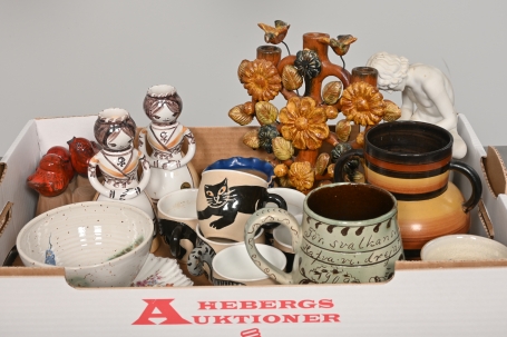 Visning: Torsdag 23/1 Kl 16-19 Lördag 25/1 11-14. Utlämning Söndag 26/1 till 19:30 Måndag 27/1 8-12 och 14-18 Tisdag 28/1 8-12 och 14-16____________________________________________________________________________________________________________________________________________________________________________________________________________- Lägsta möjliga bud är 100 kr. På alla klubbade priser tillkommer Köparprovision 10% och slagavgift på 40 kr per objekt (inklusive moms). Vissa konstföremål kan vara belagda med konstnärsavgift, s.k. Droit de Suite eller följerätt. Betalning och avhämtning av inropade objekt måste ske söndag eller måndagen efter auktionen. Magasineringsavgift kan tillkomma på föremål som inte avhämtas inom angiven tid. Föremål som är betalda och inte hämtade inom två månader skänkes till Lions eller säljes, överskottet efter lagringskostnad skänks till välgörande ändamål. Föremål som säljs på auktion är begagnade och säljs i befintligt skick. Det ankommer på köparen att undersöka föremålen och förvissa sig om skicket. Betalning Du kan betala med kort på "Mina Sidor" via din internetbank, eller med Swish, ange alltid kundnummer. Objektsbeskrivning Objektens beskrivning återspeglar Hebergs Auktioner uppfattning om objekten. Hebergs Auktioner ansvarar inte för skador som förbigåtts vid besiktningen. Hebergs Auktioner ansvarar inte för eventuella felaktigheter i katalogtexten. Bilder i katalogen är till för identifierings- syfte och återspeglar inte nödvändigtvis objektens kondition. Ändringar i katalogtext kan förekomma efter att katalogen tryckts/publicerats. Sent inkomna ändringar meddelas muntligen vid försäljningstillfället. Ur och tekniska föremål säljs som samlarföremål och Hebergs Auktioner kan inte garantera att de är i fungerande skick. Köparens undersökningsplikt gäller. Om Hebergs Auktioner efter begäran från köparen har lämnat en konditionsrapport om ett föremåls kondition skall uppgifterna endast behandlas som vägledning för köparen och befriar inte köparen från dennes undersökningsplikt. Lagen om 14 dagars ångerrätt vid auktionsköp gäller inte här där du har möjlighet att lämna bud på plats. Det framgår av distans- och hemförsäljningslagen ___________________________________________________________________________________________________________________________________________________________________________________________________________________________ Vi kan skicka mindre föremål som inte är ömtåliga med postnord det är postnords prislista över disk som gäller plus moms. Vid större objekt och ömtåliga saker kan ni kontakta transportfirmorna. ___________________________________________________________________________________________________________________________________________________________________________________________________________________________________________________________________________ Hauges Auktionstransporter Fasta priser inom Sverige och EU. info@hauges.com +46 727 122260 www.hauges.com ___________________________________________________________________________________________________________________________________________________________________________________________________________________________________________________________________________ Vrs Retro Cargo Inforetrocargo@gmail.com 0760677983 Stockholm, Karlstad, Örebro, Malmö, Göteborg ___________________________________________________________________________________________________________________________________________________________________________________________________________________________________________________________________________ JH Packman ApS Nimbusvej 7-9 2670 Greve Tlf: 0045-43735555 Mail: info@jhpackman.dk Web: jhpackman.dk ___________________________________________________________________________________________________________________________________________________________________________________________________________________________________________________________________________ ArtMove Sweden AB Stockholms Frihamn Magasin 6, Entre # 3 Frihamnsgatan 58 115 56 Stockholm Tel 08 450 44 39 Switcboard 08 450 44 60 email : marie@artmove.se www.artmove.se Vi trafikerar Stockholm Göterborg Varberg och Malmö varje vecka där vi kan erbjuda väldigt förmånliga transporter till våra filialer där kunderna själva får hämta sina varor. Vi trafikerar även Köpenhamn London Paris Amsterdam Bryssel och Helsingfors med egna bilar var annan vecka . Vi ordnar även hjälp med kurir flyg och båtfrakt det sköter vi från våra lokaler i Stockholm. __________________________________________________________________________________________________________________________________________________________________________________________________________________________________________________________________________ Falkenbergs Bud & Flyttningsbyrå AB tel: 0346-81639 fax: 0346-16359 email: fbg.flyttningsbyra@outlook.com besöksadress: Cement vägen 3 postadress: Box 290 311 23 FALKENBERG www.budoflytt.com