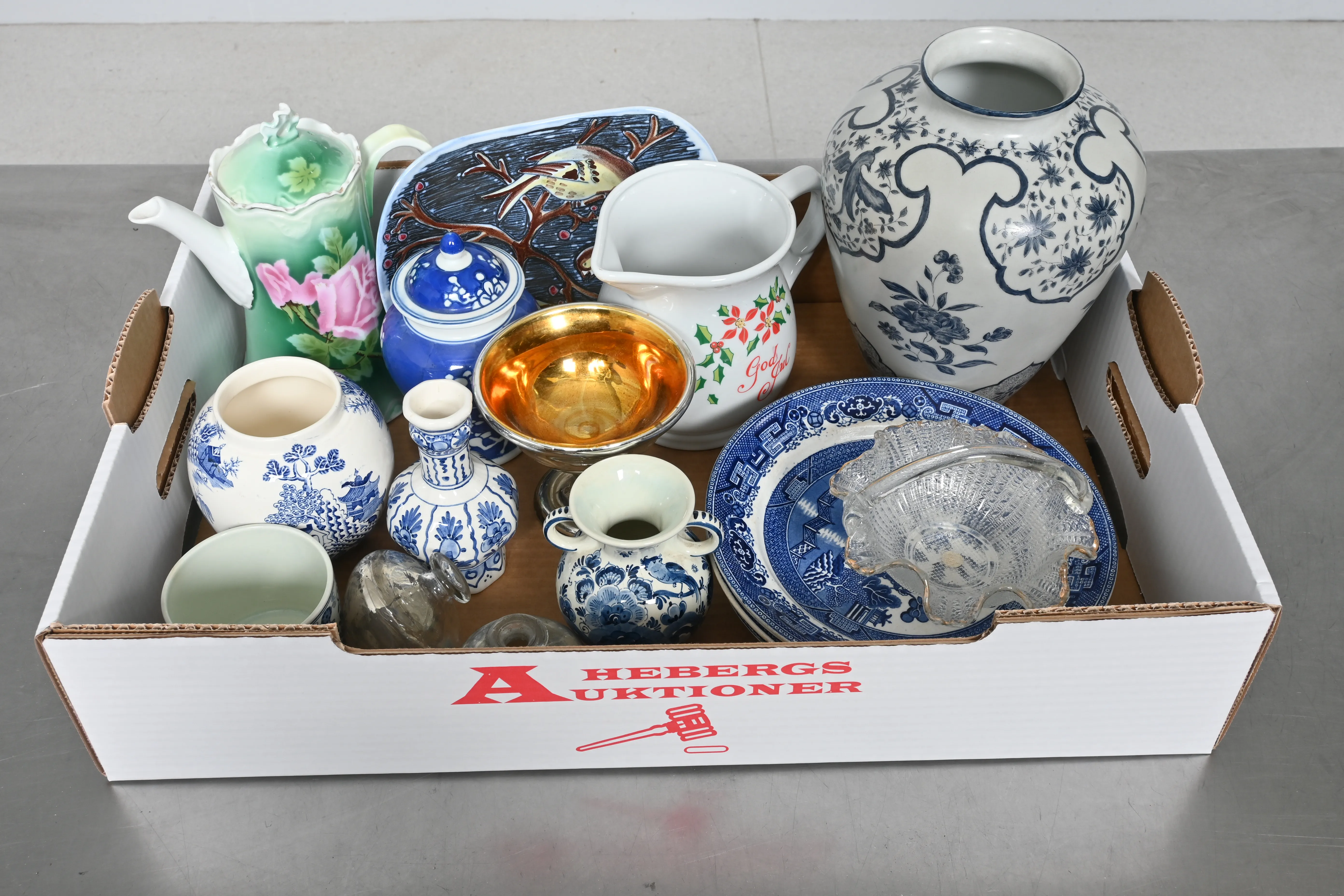 Visning: Torsdag 22/5 Kl 16-19 Lördag 24/5 11-14. Utlämning Söndag 25/5 13:00 till 19:30 Måndag 26/5 8-12 och 14-18 Tisdag 27/5 8-12 och 14-16____________________________________________________________________________________________________________________________________________________________________________________________________________- Lägsta möjliga bud är 100 kr. På alla klubbade priser tillkommer Köparprovision 10% och slagavgift på 40 kr per objekt (inklusive moms). Vissa konstföremål kan vara belagda med konstnärsavgift, s.k. Droit de Suite eller följerätt. Betalning och avhämtning av inropade objekt måste ske söndag eller måndagen efter auktionen. Magasineringsavgift kan tillkomma på föremål som inte avhämtas inom angiven tid. Föremål som är betalda och inte hämtade inom två månader skänkes till Lions eller säljes, överskottet efter lagringskostnad skänks till välgörande ändamål. Föremål som säljs på auktion är begagnade och säljs i befintligt skick. Det ankommer på köparen att undersöka föremålen och förvissa sig om skicket. Betalning Du kan betala med kort på "Mina Sidor" via din internetbank, eller med Swish, ange alltid kundnummer. Objektsbeskrivning Objektens beskrivning återspeglar Hebergs Auktioner uppfattning om objekten. Hebergs Auktioner ansvarar inte för skador som förbigåtts vid besiktningen. Hebergs Auktioner ansvarar inte för eventuella felaktigheter i katalogtexten. Bilder i katalogen är till för identifierings- syfte och återspeglar inte nödvändigtvis objektens kondition. Ändringar i katalogtext kan förekomma efter att katalogen tryckts/publicerats. Sent inkomna ändringar meddelas muntligen vid försäljningstillfället. Ur och tekniska föremål säljs som samlarföremål och Hebergs Auktioner kan inte garantera att de är i fungerande skick. Köparens undersökningsplikt gäller. Om Hebergs Auktioner efter begäran från köparen har lämnat en konditionsrapport om ett föremåls kondition skall uppgifterna endast behandlas som vägledning för köparen och befriar inte köparen från dennes undersökningsplikt. Lagen om 14 dagars ångerrätt vid auktionsköp gäller inte här där du har möjlighet att lämna bud på plats. Det framgår av distans- och hemförsäljningslagen ___________________________________________________________________________________________________________________________________________________________________________________________________________________________ Vi kan skicka mindre föremål som inte är ömtåliga med postnord det är postnords prislista över disk som gäller plus moms. Vid större objekt och ömtåliga saker kan ni kontakta transportfirmorna. ___________________________________________________________________________________________________________________________________________________________________________________________________________________________________________________________________________ Hauges Auktionstransporter Fasta priser inom Sverige och EU. info@hauges.com +46 727 122260 www.hauges.com ___________________________________________________________________________________________________________________________________________________________________________________________________________________________________________________________________________ Vrs Retro Cargo Inforetrocargo@gmail.com 0760677983 Stockholm, Karlstad, Örebro, Malmö, Göteborg ___________________________________________________________________________________________________________________________________________________________________________________________________________________________________________________________________________ JH Packman ApS Nimbusvej 7-9 2670 Greve Tlf: 0045-43735555 Mail: info@jhpackman.dk Web: jhpackman.dk ___________________________________________________________________________________________________________________________________________________________________________________________________________________________________________________________________________ ArtMove Sweden AB Stockholms Frihamn Magasin 6, Entre # 3 Frihamnsgatan 58 115 56 Stockholm Tel 08 450 44 39 Switcboard 08 450 44 60 email : marie@artmove.se www.artmove.se Vi trafikerar Stockholm Göterborg Varberg och Malmö varje vecka där vi kan erbjuda väldigt förmånliga transporter till våra filialer där kunderna själva får hämta sina varor. Vi trafikerar även Köpenhamn London Paris Amsterdam Bryssel och Helsingfors med egna bilar var annan vecka . Vi ordnar även hjälp med kurir flyg och båtfrakt det sköter vi från våra lokaler i Stockholm. __________________________________________________________________________________________________________________________________________________________________________________________________________________________________________________________________________ Falkenbergs Bud & Flyttningsbyrå AB tel: 0346-81639 fax: 0346-16359 email: fbg.flyttningsbyra@outlook.com besöksadress: Cement vägen 3 postadress: Box 290 311 23 FALKENBERG www.budoflytt.com