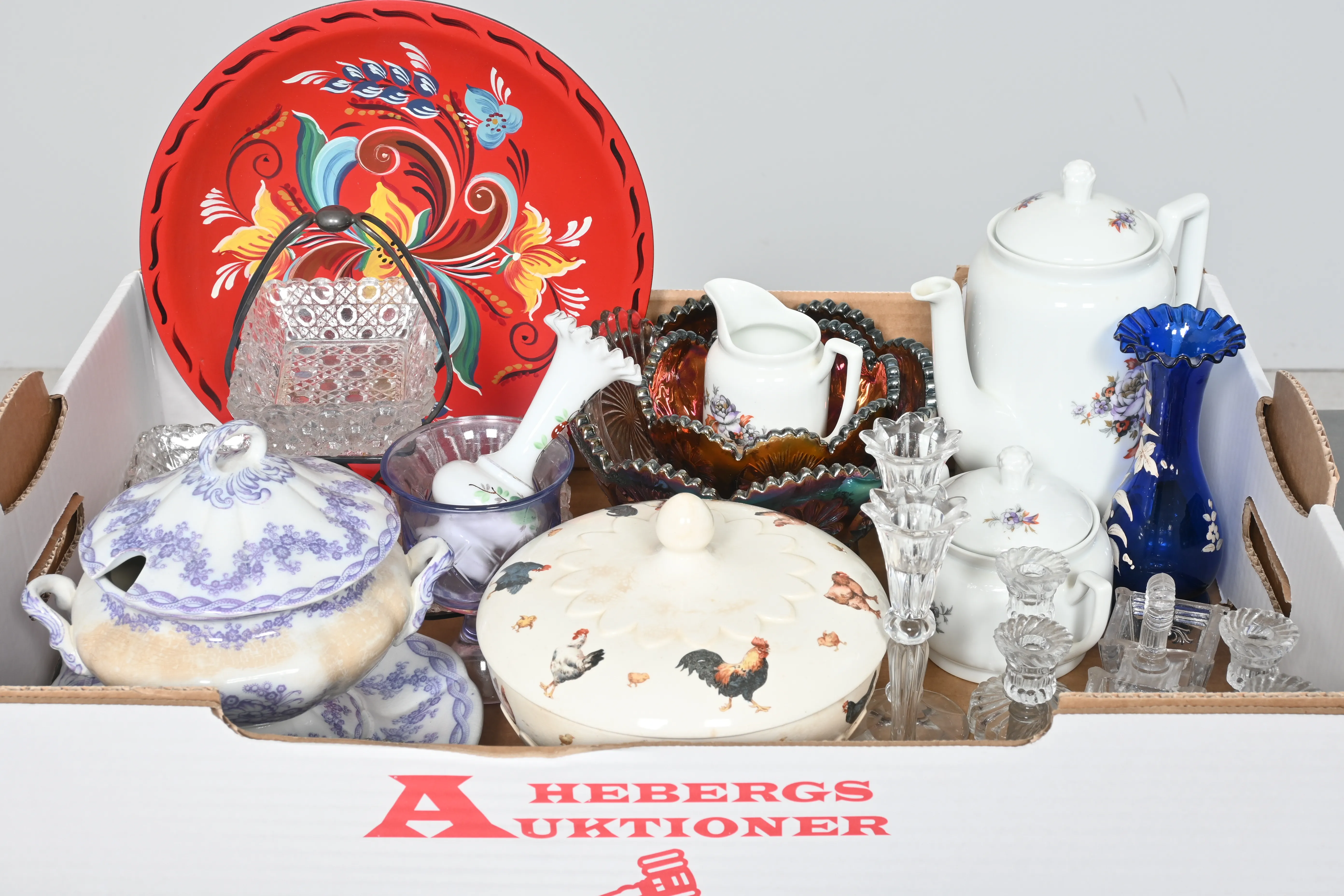 ____________________________________________________________________________________________________________________________________________________________________________________________________________- Lägsta möjliga bud är 100 kr. På alla klubbade priser tillkommer Köparprovision 10% och slagavgift på 40 kr per objekt (inklusive moms). Vissa konstföremål kan vara belagda med konstnärsavgift, s.k. Droit de Suite eller följerätt. Betalning och avhämtning av inropade objekt måste ske söndag eller måndagen efter auktionen. Magasineringsavgift kan tillkomma på föremål som inte avhämtas inom angiven tid. Föremål som är betalda och inte hämtade inom två månader skänkes till Lions eller säljes, överskottet efter lagringskostnad skänks till välgörande ändamål. Föremål som säljs på auktion är begagnade och säljs i befintligt skick. Det ankommer på köparen att undersöka föremålen och förvissa sig om skicket. Betalning Du kan betala med kort på "Mina Sidor" via din internetbank, eller med Swish, ange alltid kundnummer. Objektsbeskrivning Objektens beskrivning återspeglar Hebergs Auktioner uppfattning om objekten. Hebergs Auktioner ansvarar inte för skador som förbigåtts vid besiktningen. Hebergs Auktioner ansvarar inte för eventuella felaktigheter i katalogtexten. Bilder i katalogen är till för identifierings- syfte och återspeglar inte nödvändigtvis objektens kondition. Ändringar i katalogtext kan förekomma efter att katalogen tryckts/publicerats. Sent inkomna ändringar meddelas muntligen vid försäljningstillfället. Ur och tekniska föremål säljs som samlarföremål och Hebergs Auktioner kan inte garantera att de är i fungerande skick. Köparens undersökningsplikt gäller. Om Hebergs Auktioner efter begäran från köparen har lämnat en konditionsrapport om ett föremåls kondition skall uppgifterna endast behandlas som vägledning för köparen och befriar inte köparen från dennes undersökningsplikt. Lagen om 14 dagars ångerrätt vid auktionsköp gäller inte här där du har möjlighet att lämna bud på plats. Det framgår av distans- och hemförsäljningslagen ___________________________________________________________________________________________________________________________________________________________________________________________________________________________ Vi kan skicka mindre föremål som inte är ömtåliga med postnord det är postnords prislista över disk som gäller plus moms. Vid större objekt och ömtåliga saker kan ni kontakta transportfirmorna. ___________________________________________________________________________________________________________________________________________________________________________________________________________________________________________________________________________ Hauges Auktionstransporter Fasta priser inom Sverige och EU. info@hauges.com +46 727 122260 www.hauges.com ___________________________________________________________________________________________________________________________________________________________________________________________________________________________________________________________________________ Vrs Retro Cargo Inforetrocargo@gmail.com 0760677983 Stockholm, Karlstad, Örebro, Malmö, Göteborg ___________________________________________________________________________________________________________________________________________________________________________________________________________________________________________________________________________ JH Packman ApS Nimbusvej 7-9 2670 Greve Tlf: 0045-43735555 Mail: info@jhpackman.dk Web: jhpackman.dk ___________________________________________________________________________________________________________________________________________________________________________________________________________________________________________________________________________ ArtMove Sweden AB Stockholms Frihamn Magasin 6, Entre # 3 Frihamnsgatan 58 115 56 Stockholm Tel 08 450 44 39 Switcboard 08 450 44 60 email : marie@artmove.se www.artmove.se Vi trafikerar Stockholm Göterborg Varberg och Malmö varje vecka där vi kan erbjuda väldigt förmånliga transporter till våra filialer där kunderna själva får hämta sina varor. Vi trafikerar även Köpenhamn London Paris Amsterdam Bryssel och Helsingfors med egna bilar var annan vecka . Vi ordnar även hjälp med kurir flyg och båtfrakt det sköter vi från våra lokaler i Stockholm. __________________________________________________________________________________________________________________________________________________________________________________________________________________________________________________________________________ Falkenbergs Bud & Flyttningsbyrå AB tel: 0346-81639 fax: 0346-16359 email: fbg.flyttningsbyra@outlook.com besöksadress: Cement vägen 3 postadress: Box 290 311 23 FALKENBERG www.budoflytt.com