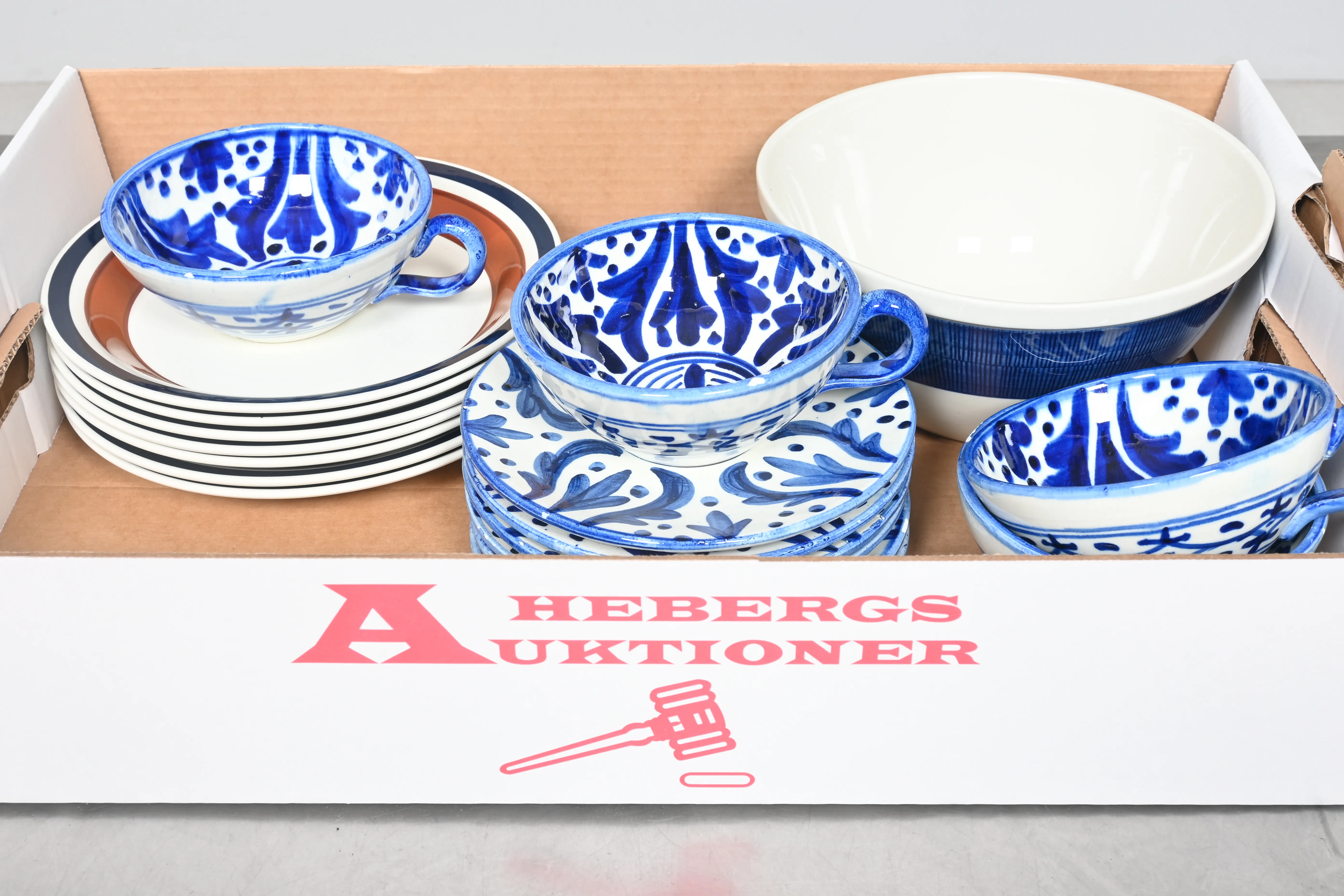 Visning: Torsdag 25/9 Kl 16-19 Lördag 27/9 11-14. Utlämning Söndag 28/9 13:00 till 19:30 Måndag 29/9 8-12 och 14-18 Tisdag 30/9 8-12 och 14-16____________________________________________________________________________________________________________________________________________________________________________________________________________- Lägsta möjliga bud är 100 kr. På alla klubbade priser tillkommer Köparprovision 10% och slagavgift på 40 kr per objekt (inklusive moms). Vissa konstföremål kan vara belagda med konstnärsavgift, s.k. Droit de Suite eller följerätt. Betalning och avhämtning av inropade objekt måste ske söndag eller måndagen efter auktionen. Magasineringsavgift kan tillkomma på föremål som inte avhämtas inom angiven tid. Föremål som är betalda och inte hämtade inom två månader skänkes till Lions eller säljes, överskottet efter lagringskostnad skänks till välgörande ändamål. Föremål som säljs på auktion är begagnade och säljs i befintligt skick. Det ankommer på köparen att undersöka föremålen och förvissa sig om skicket. Betalning Du kan betala med kort på "Mina Sidor" via din internetbank, eller med Swish, ange alltid kundnummer. Objektsbeskrivning Objektens beskrivning återspeglar Hebergs Auktioner uppfattning om objekten. Hebergs Auktioner ansvarar inte för skador som förbigåtts vid besiktningen. Hebergs Auktioner ansvarar inte för eventuella felaktigheter i katalogtexten. Bilder i katalogen är till för identifierings- syfte och återspeglar inte nödvändigtvis objektens kondition. Ändringar i katalogtext kan förekomma efter att katalogen tryckts/publicerats. Sent inkomna ändringar meddelas muntligen vid försäljningstillfället. Ur och tekniska föremål säljs som samlarföremål och Hebergs Auktioner kan inte garantera att de är i fungerande skick. Köparens undersökningsplikt gäller. Om Hebergs Auktioner efter begäran från köparen har lämnat en konditionsrapport om ett föremåls kondition skall uppgifterna endast behandlas som vägledning för köparen och befriar inte köparen från dennes undersökningsplikt. Lagen om 14 dagars ångerrätt vid auktionsköp gäller inte här där du har möjlighet att lämna bud på plats. Det framgår av distans- och hemförsäljningslagen ___________________________________________________________________________________________________________________________________________________________________________________________________________________________ Vi kan skicka mindre föremål som inte är ömtåliga med postnord det är postnords prislista över disk som gäller plus moms. Vi skickar inga möbler, tavlor, porslinsföremål, glasföremål m.m
