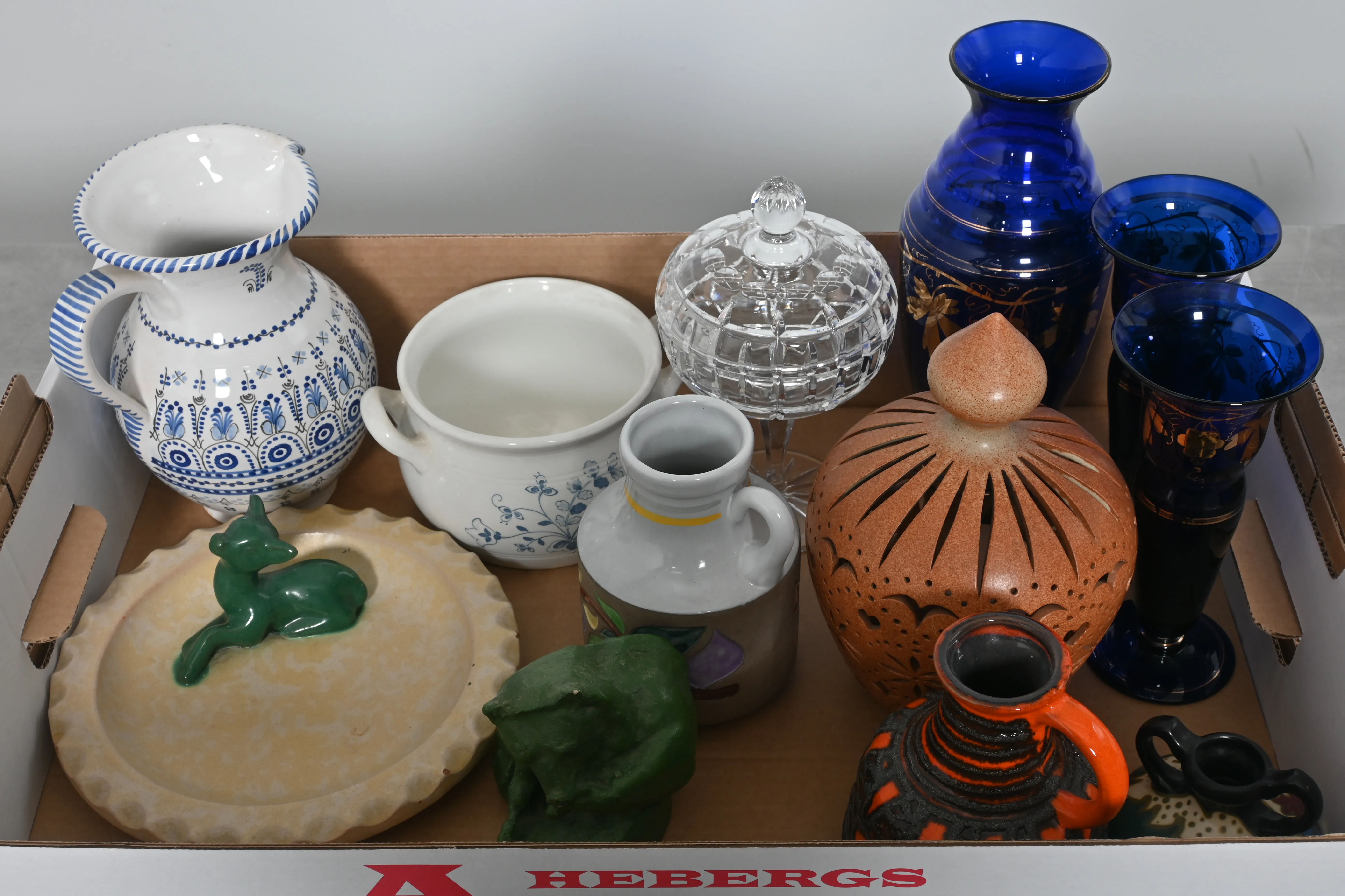 Visning: Torsdag 20/11 Kl 16-19 Lördag 22/11 11-14. Utlämning Söndag 23/11 13:00 till 19:30 Måndag 24/11 8-12 och 14-18 Tisdag 25/11 8-12 och 14-16____________________________________________________________________________________________________________________________________________________________________________________________________________- Lägsta möjliga bud är 100 kr. På alla klubbade priser tillkommer Köparprovision 10% och slagavgift på 40 kr per objekt (inklusive moms). Vissa konstföremål kan vara belagda med konstnärsavgift, s.k. Droit de Suite eller följerätt. Betalning och avhämtning av inropade objekt måste ske söndag eller måndagen efter auktionen. Magasineringsavgift kan tillkomma på föremål som inte avhämtas inom angiven tid. Föremål som är betalda och inte hämtade inom två månader skänkes till Lions eller säljes, överskottet efter lagringskostnad skänks till välgörande ändamål. Föremål som säljs på auktion är begagnade och säljs i befintligt skick. Det ankommer på köparen att undersöka föremålen och förvissa sig om skicket. Betalning Du kan betala med kort på "Mina Sidor" via din internetbank, eller med Swish, ange alltid kundnummer. Objektsbeskrivning Objektens beskrivning återspeglar Hebergs Auktioner uppfattning om objekten. Hebergs Auktioner ansvarar inte för skador som förbigåtts vid besiktningen. Hebergs Auktioner ansvarar inte för eventuella felaktigheter i katalogtexten. Bilder i katalogen är till för identifierings- syfte och återspeglar inte nödvändigtvis objektens kondition. Ändringar i katalogtext kan förekomma efter att katalogen tryckts/publicerats. Sent inkomna ändringar meddelas muntligen vid försäljningstillfället. Ur och tekniska föremål säljs som samlarföremål och Hebergs Auktioner kan inte garantera att de är i fungerande skick. Köparens undersökningsplikt gäller. Om Hebergs Auktioner efter begäran från köparen har lämnat en konditionsrapport om ett föremåls kondition skall uppgifterna endast behandlas som vägledning för köparen och befriar inte köparen från dennes undersökningsplikt. Lagen om 14 dagars ångerrätt vid auktionsköp gäller inte här där du har möjlighet att lämna bud på plats. Det framgår av distans- och hemförsäljningslagen ___________________________________________________________________________________________________________________________________________________________________________________________________________________________ Vi kan skicka mindre föremål som inte är ömtåliga med postnord det är postnords prislista över disk som gäller plus moms. Vi skickar inga möbler, tavlor, porslinsföremål, glasföremål m.m