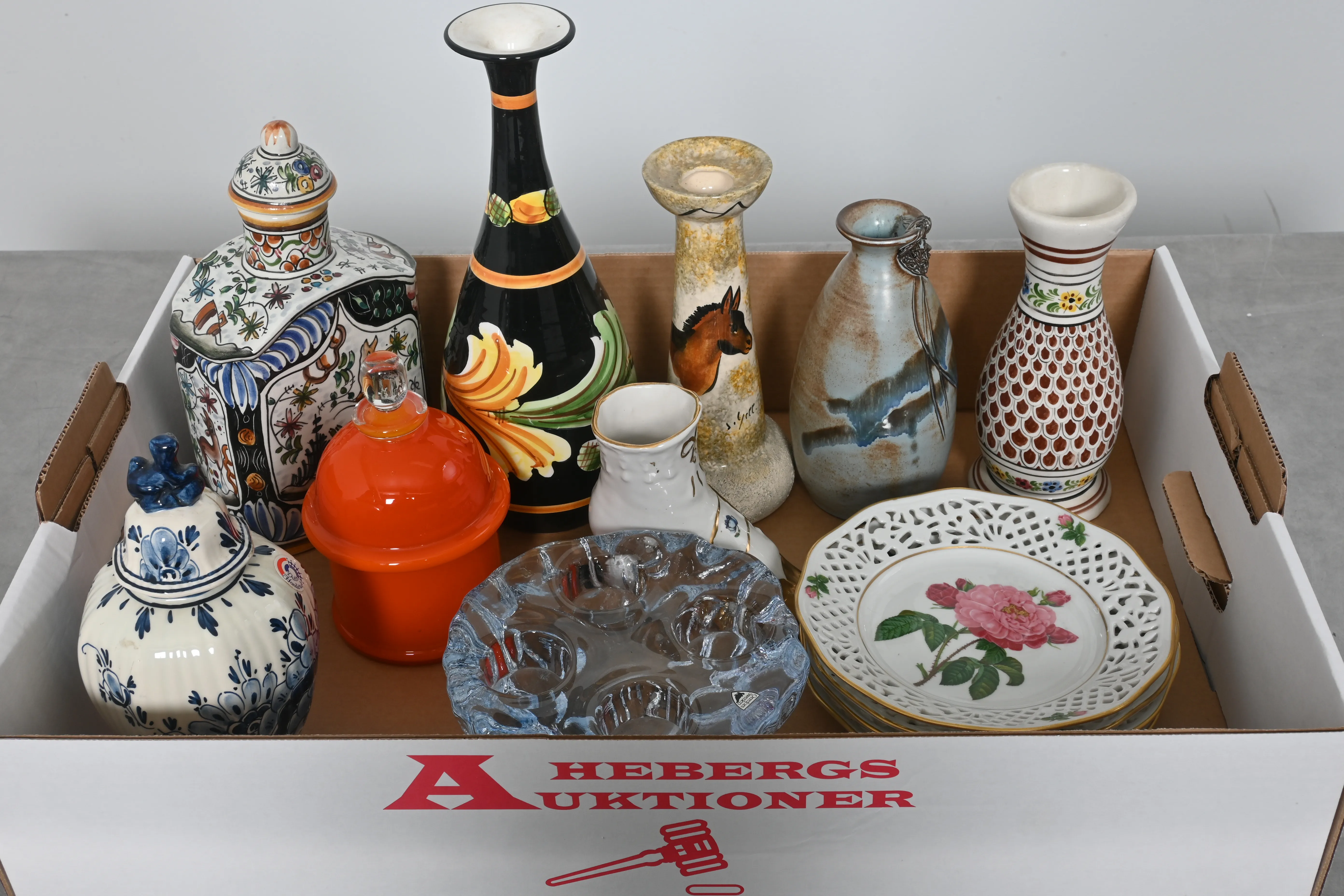____________________________________________________________________________________________________________________________________________________________________________________________________________- Lägsta möjliga bud är 100 kr. På alla klubbade priser tillkommer Köparprovision 10% och slagavgift på 40 kr per objekt (inklusive moms). Vissa konstföremål kan vara belagda med konstnärsavgift, s.k. Droit de Suite eller följerätt. Betalning och avhämtning av inropade objekt måste ske söndag eller måndagen efter auktionen. Magasineringsavgift kan tillkomma på föremål som inte avhämtas inom angiven tid. Föremål som är betalda och inte hämtade inom två månader skänkes till Lions eller säljes, överskottet efter lagringskostnad skänks till välgörande ändamål. Föremål som säljs på auktion är begagnade och säljs i befintligt skick. Det ankommer på köparen att undersöka föremålen och förvissa sig om skicket. Betalning Du kan betala med kort på "Mina Sidor" via din internetbank, eller med Swish, ange alltid kundnummer. Objektsbeskrivning Objektens beskrivning återspeglar Hebergs Auktioner uppfattning om objekten. Hebergs Auktioner ansvarar inte för skador som förbigåtts vid besiktningen. Hebergs Auktioner ansvarar inte för eventuella felaktigheter i katalogtexten. Bilder i katalogen är till för identifierings- syfte och återspeglar inte nödvändigtvis objektens kondition. Ändringar i katalogtext kan förekomma efter att katalogen tryckts/publicerats. Sent inkomna ändringar meddelas muntligen vid försäljningstillfället. Ur och tekniska föremål säljs som samlarföremål och Hebergs Auktioner kan inte garantera att de är i fungerande skick. Köparens undersökningsplikt gäller. Om Hebergs Auktioner efter begäran från köparen har lämnat en konditionsrapport om ett föremåls kondition skall uppgifterna endast behandlas som vägledning för köparen och befriar inte köparen från dennes undersökningsplikt. Lagen om 14 dagars ångerrätt vid auktionsköp gäller inte här där du har möjlighet att lämna bud på plats. Det framgår av distans- och hemförsäljningslagen ___________________________________________________________________________________________________________________________________________________________________________________________________________________________ Vi kan skicka mindre föremål som inte är ömtåliga med postnord det är postnords prislista över disk som gäller plus moms. Vi skickar inga möbler, tavlor, porslinsföremål, glasföremål m.m