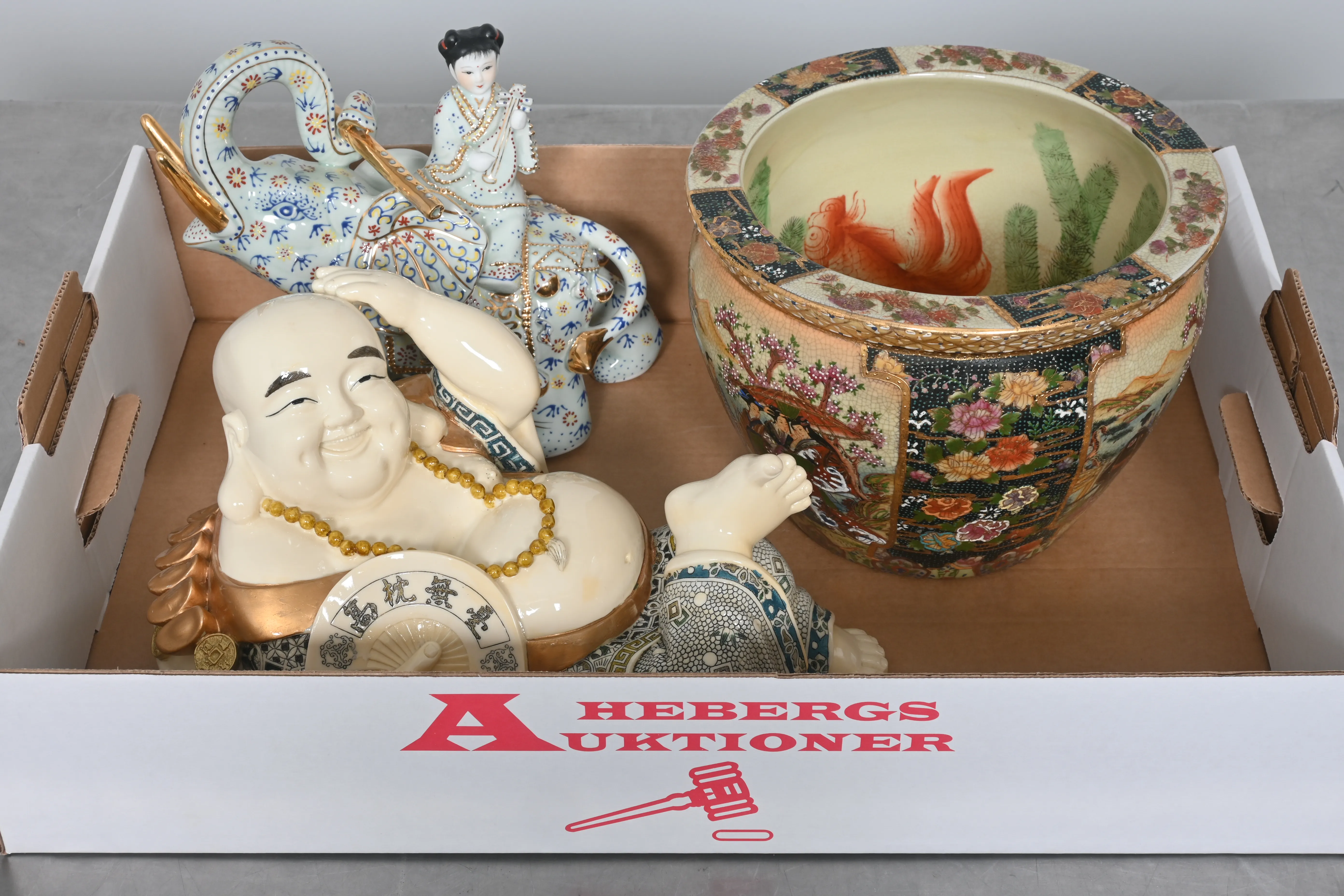 ____________________________________________________________________________________________________________________________________________________________________________________________________________- Lägsta möjliga bud är 100 kr. På alla klubbade priser tillkommer Köparprovision 10% och slagavgift på 40 kr per objekt (inklusive moms). Vissa konstföremål kan vara belagda med konstnärsavgift, s.k. Droit de Suite eller följerätt. Betalning och avhämtning av inropade objekt måste ske söndag eller måndagen efter auktionen. Magasineringsavgift kan tillkomma på föremål som inte avhämtas inom angiven tid. Föremål som är betalda och inte hämtade inom två månader skänkes till Lions eller säljes, överskottet efter lagringskostnad skänks till välgörande ändamål. Föremål som säljs på auktion är begagnade och säljs i befintligt skick. Det ankommer på köparen att undersöka föremålen och förvissa sig om skicket. Betalning Du kan betala med kort på "Mina Sidor" via din internetbank, eller med Swish, ange alltid kundnummer. Objektsbeskrivning Objektens beskrivning återspeglar Hebergs Auktioner uppfattning om objekten. Hebergs Auktioner ansvarar inte för skador som förbigåtts vid besiktningen. Hebergs Auktioner ansvarar inte för eventuella felaktigheter i katalogtexten. Bilder i katalogen är till för identifierings- syfte och återspeglar inte nödvändigtvis objektens kondition. Ändringar i katalogtext kan förekomma efter att katalogen tryckts/publicerats. Sent inkomna ändringar meddelas muntligen vid försäljningstillfället. Ur och tekniska föremål säljs som samlarföremål och Hebergs Auktioner kan inte garantera att de är i fungerande skick. Köparens undersökningsplikt gäller. Om Hebergs Auktioner efter begäran från köparen har lämnat en konditionsrapport om ett föremåls kondition skall uppgifterna endast behandlas som vägledning för köparen och befriar inte köparen från dennes undersökningsplikt. Lagen om 14 dagars ångerrätt vid auktionsköp gäller inte här där du har möjlighet att lämna bud på plats. Det framgår av distans- och hemförsäljningslagen ___________________________________________________________________________________________________________________________________________________________________________________________________________________________ Vi kan skicka mindre föremål som inte är ömtåliga med postnord det är postnords prislista över disk som gäller plus moms. Vi skickar inga möbler, tavlor, porslinsföremål, glasföremål m.m