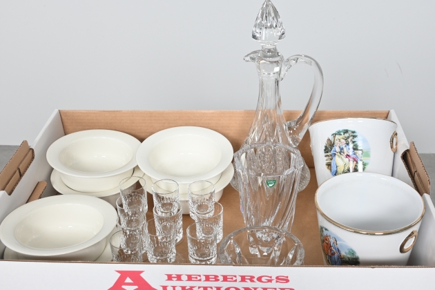 Visning: Torsdag 20/11 Kl 16-19 Lördag 22/11 11-14. Utlämning Söndag 23/11 13:00 till 19:30 Måndag 24/11 8-12 och 14-18 Tisdag 25/11 8-12 och 14-16____________________________________________________________________________________________________________________________________________________________________________________________________________- Lägsta möjliga bud är 100 kr. På alla klubbade priser tillkommer Köparprovision 10% och slagavgift på 40 kr per objekt (inklusive moms). Vissa konstföremål kan vara belagda med konstnärsavgift, s.k. Droit de Suite eller följerätt. Betalning och avhämtning av inropade objekt måste ske söndag eller måndagen efter auktionen. Magasineringsavgift kan tillkomma på föremål som inte avhämtas inom angiven tid. Föremål som är betalda och inte hämtade inom två månader skänkes till Lions eller säljes, överskottet efter lagringskostnad skänks till välgörande ändamål. Föremål som säljs på auktion är begagnade och säljs i befintligt skick. Det ankommer på köparen att undersöka föremålen och förvissa sig om skicket. Betalning Du kan betala med kort på "Mina Sidor" via din internetbank, eller med Swish, ange alltid kundnummer. Objektsbeskrivning Objektens beskrivning återspeglar Hebergs Auktioner uppfattning om objekten. Hebergs Auktioner ansvarar inte för skador som förbigåtts vid besiktningen. Hebergs Auktioner ansvarar inte för eventuella felaktigheter i katalogtexten. Bilder i katalogen är till för identifierings- syfte och återspeglar inte nödvändigtvis objektens kondition. Ändringar i katalogtext kan förekomma efter att katalogen tryckts/publicerats. Sent inkomna ändringar meddelas muntligen vid försäljningstillfället. Ur och tekniska föremål säljs som samlarföremål och Hebergs Auktioner kan inte garantera att de är i fungerande skick. Köparens undersökningsplikt gäller. Om Hebergs Auktioner efter begäran från köparen har lämnat en konditionsrapport om ett föremåls kondition skall uppgifterna endast behandlas som vägledning för köparen och befriar inte köparen från dennes undersökningsplikt. Lagen om 14 dagars ångerrätt vid auktionsköp gäller inte här där du har möjlighet att lämna bud på plats. Det framgår av distans- och hemförsäljningslagen ___________________________________________________________________________________________________________________________________________________________________________________________________________________________ Vi kan skicka mindre föremål som inte är ömtåliga med postnord det är postnords prislista över disk som gäller plus moms. Vi skickar inga möbler, tavlor, porslinsföremål, glasföremål m.m
