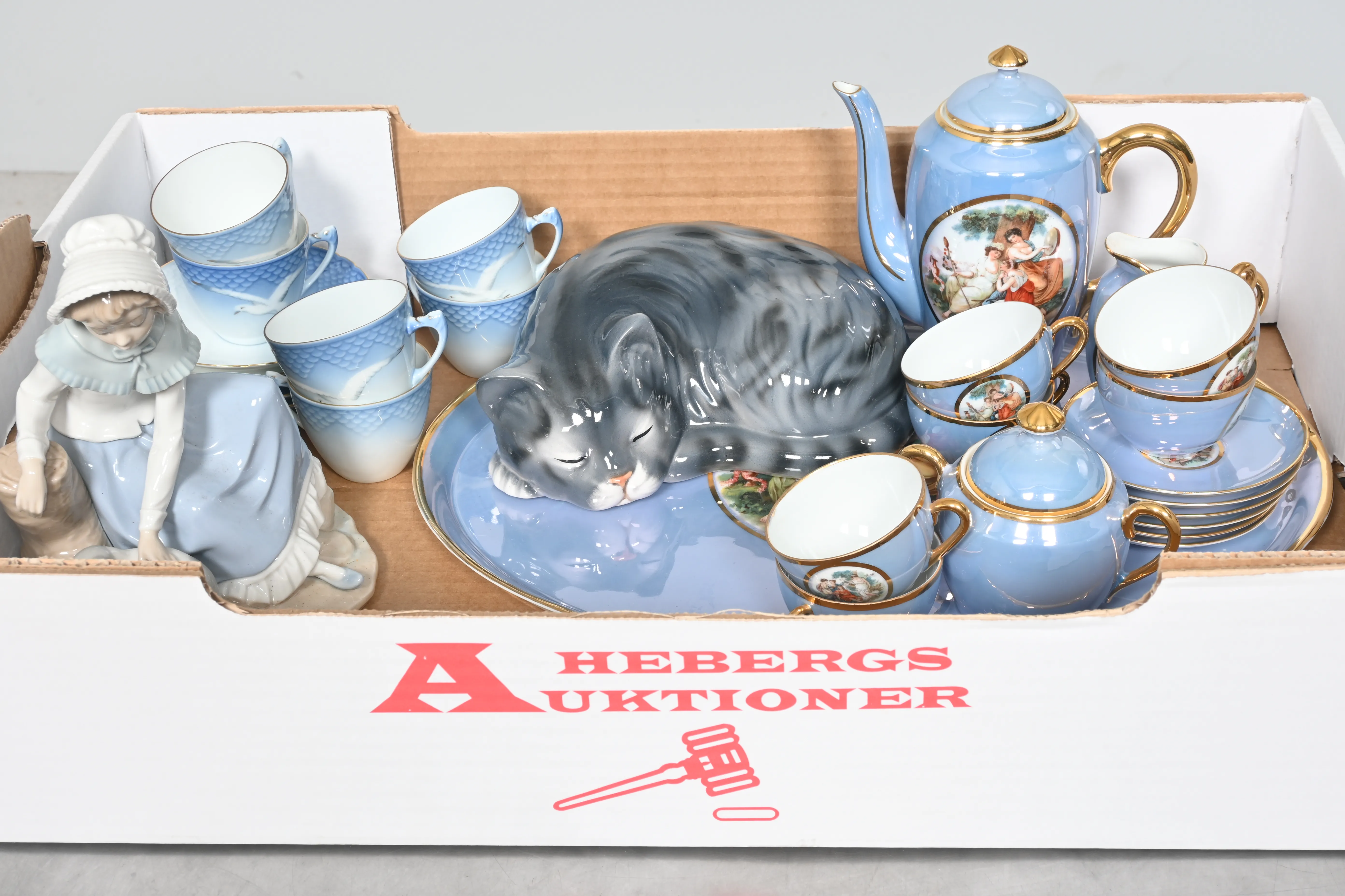 Visning: Torsdag 20/11 Kl 16-19 Lördag 22/11 11-14. Utlämning Söndag 23/11 13:00 till 19:30 Måndag 24/11 8-12 och 14-18 Tisdag 25/11 8-12 och 14-16____________________________________________________________________________________________________________________________________________________________________________________________________________- Lägsta möjliga bud är 100 kr. På alla klubbade priser tillkommer Köparprovision 10% och slagavgift på 40 kr per objekt (inklusive moms). Vissa konstföremål kan vara belagda med konstnärsavgift, s.k. Droit de Suite eller följerätt. Betalning och avhämtning av inropade objekt måste ske söndag eller måndagen efter auktionen. Magasineringsavgift kan tillkomma på föremål som inte avhämtas inom angiven tid. Föremål som är betalda och inte hämtade inom två månader skänkes till Lions eller säljes, överskottet efter lagringskostnad skänks till välgörande ändamål. Föremål som säljs på auktion är begagnade och säljs i befintligt skick. Det ankommer på köparen att undersöka föremålen och förvissa sig om skicket. Betalning Du kan betala med kort på "Mina Sidor" via din internetbank, eller med Swish, ange alltid kundnummer. Objektsbeskrivning Objektens beskrivning återspeglar Hebergs Auktioner uppfattning om objekten. Hebergs Auktioner ansvarar inte för skador som förbigåtts vid besiktningen. Hebergs Auktioner ansvarar inte för eventuella felaktigheter i katalogtexten. Bilder i katalogen är till för identifierings- syfte och återspeglar inte nödvändigtvis objektens kondition. Ändringar i katalogtext kan förekomma efter att katalogen tryckts/publicerats. Sent inkomna ändringar meddelas muntligen vid försäljningstillfället. Ur och tekniska föremål säljs som samlarföremål och Hebergs Auktioner kan inte garantera att de är i fungerande skick. Köparens undersökningsplikt gäller. Om Hebergs Auktioner efter begäran från köparen har lämnat en konditionsrapport om ett föremåls kondition skall uppgifterna endast behandlas som vägledning för köparen och befriar inte köparen från dennes undersökningsplikt. Lagen om 14 dagars ångerrätt vid auktionsköp gäller inte här där du har möjlighet att lämna bud på plats. Det framgår av distans- och hemförsäljningslagen ___________________________________________________________________________________________________________________________________________________________________________________________________________________________ Vi kan skicka mindre föremål som inte är ömtåliga med postnord det är postnords prislista över disk som gäller plus moms. Vi skickar inga möbler, tavlor, porslinsföremål, glasföremål m.m