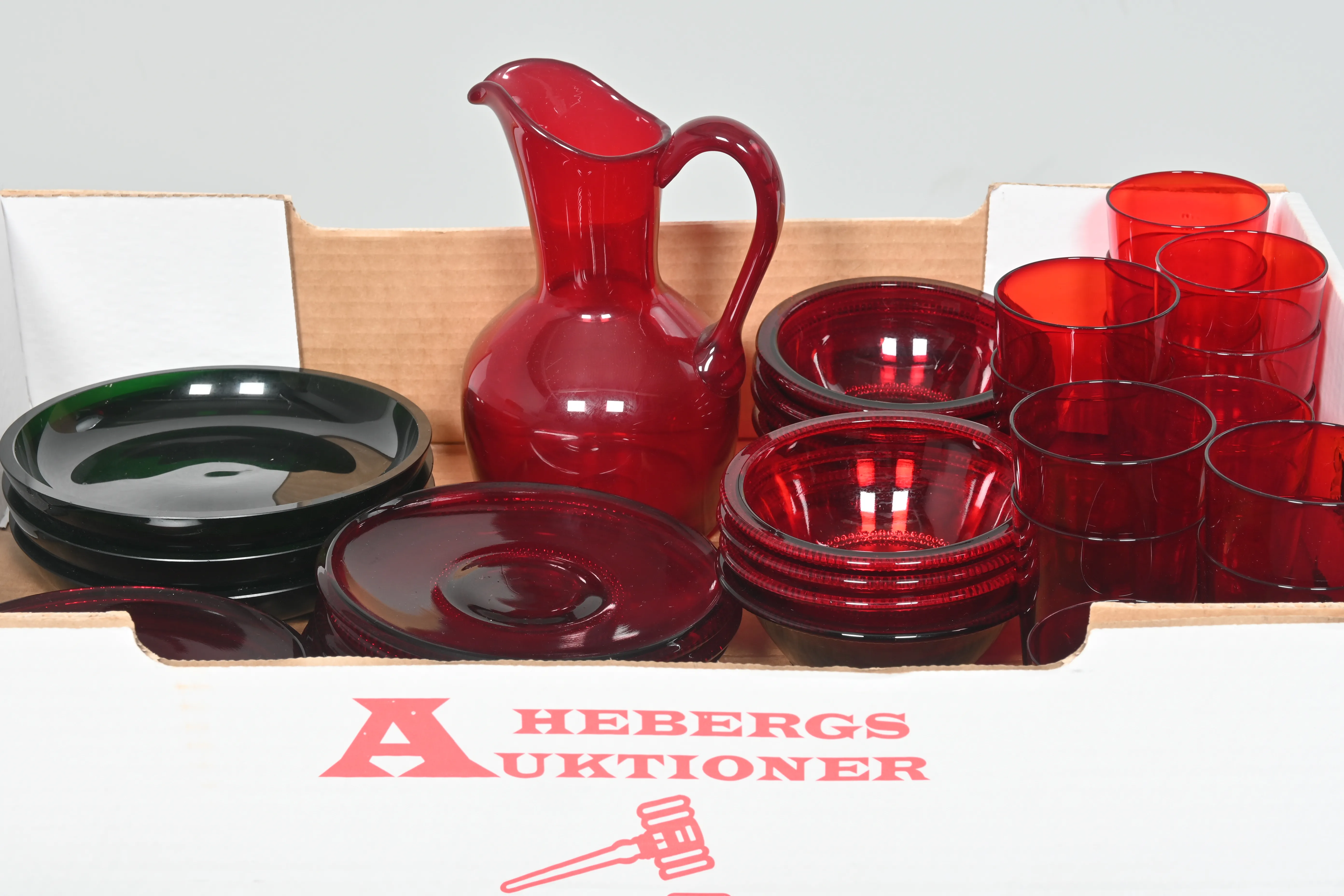 Visning: Torsdag 22/1 Kl 16-19 Lördag 24/1 11-14. Utlämning Söndag 25/1 13:00 till 19:30 Måndag 26/1 8-12 och 14-18 Tisdag 27/1 8-12 och 14-16____________________________________________________________________________________________________________________________________________________________________________________________________________- Lägsta möjliga bud är 100 kr. På alla klubbade priser tillkommer Köparprovision 10% och slagavgift på 40 kr per objekt (inklusive moms). Vissa konstföremål kan vara belagda med konstnärsavgift, s.k. Droit de Suite eller följerätt. Betalning och avhämtning av inropade objekt måste ske söndag eller måndagen efter auktionen. Magasineringsavgift kan tillkomma på föremål som inte avhämtas inom angiven tid. Föremål som är betalda och inte hämtade inom två månader skänkes till Lions eller säljes, överskottet efter lagringskostnad skänks till välgörande ändamål. Föremål som säljs på auktion är begagnade och säljs i befintligt skick. Det ankommer på köparen att undersöka föremålen och förvissa sig om skicket. Betalning Du kan betala med kort på "Mina Sidor" via din internetbank, eller med Swish, ange alltid kundnummer. Objektsbeskrivning Objektens beskrivning återspeglar Hebergs Auktioner uppfattning om objekten. Hebergs Auktioner ansvarar inte för skador som förbigåtts vid besiktningen. Hebergs Auktioner ansvarar inte för eventuella felaktigheter i katalogtexten. Bilder i katalogen är till för identifierings- syfte och återspeglar inte nödvändigtvis objektens kondition. Ändringar i katalogtext kan förekomma efter att katalogen tryckts/publicerats. Sent inkomna ändringar meddelas muntligen vid försäljningstillfället. Ur och tekniska föremål säljs som samlarföremål och Hebergs Auktioner kan inte garantera att de är i fungerande skick. Köparens undersökningsplikt gäller. Om Hebergs Auktioner efter begäran från köparen har lämnat en konditionsrapport om ett föremåls kondition skall uppgifterna endast behandlas som vägledning för köparen och befriar inte köparen från dennes undersökningsplikt. Lagen om 14 dagars ångerrätt vid auktionsköp gäller inte här där du har möjlighet att lämna bud på plats. Det framgår av distans- och hemförsäljningslagen ___________________________________________________________________________________________________________________________________________________________________________________________________________________________ Vi kan skicka mindre föremål som inte är ömtåliga med postnord det är postnords prislista över disk som gäller plus moms. Vi skickar inga möbler, tavlor, porslinsföremål, glasföremål m.m