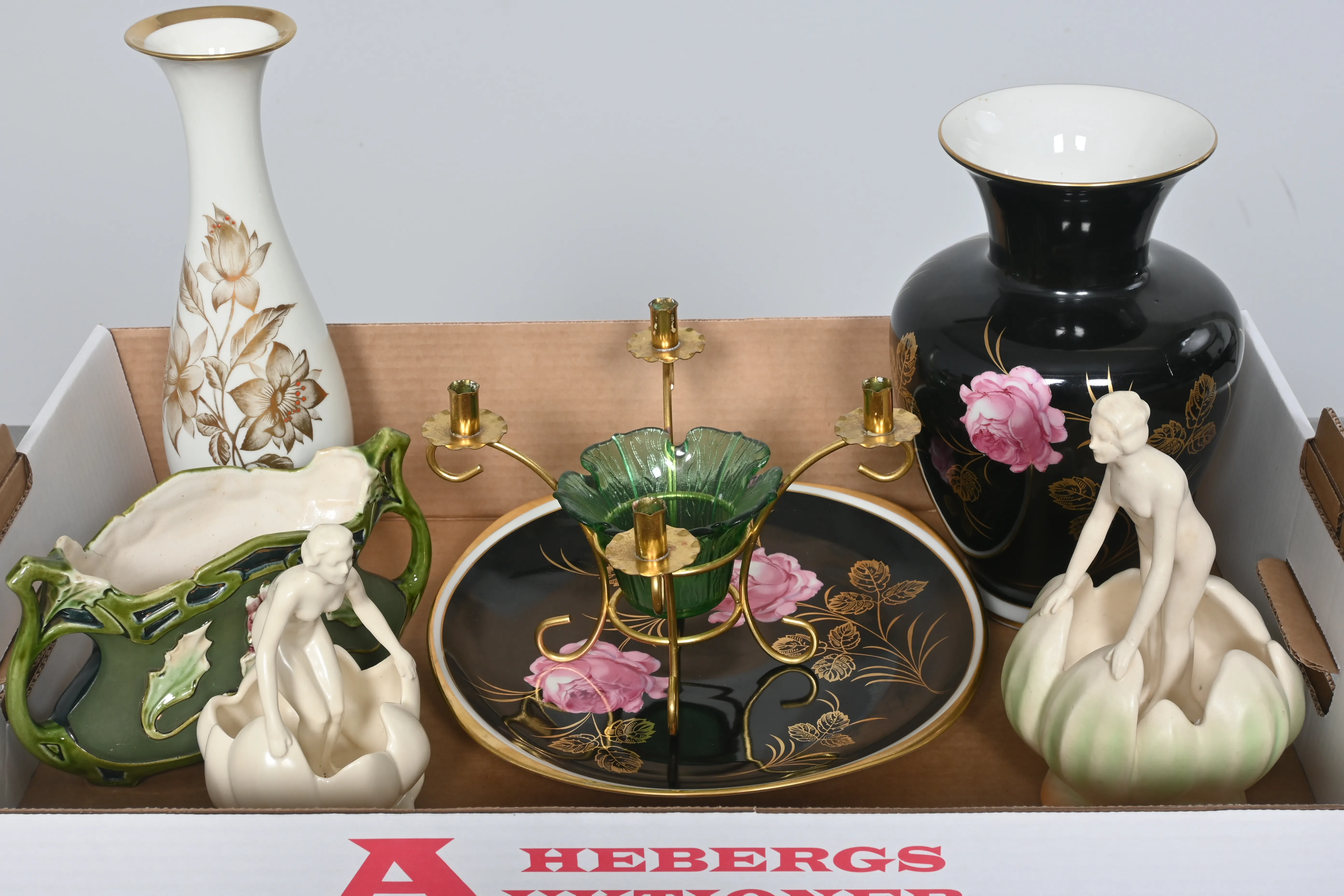 ____________________________________________________________________________________________________________________________________________________________________________________________________________- Lägsta möjliga bud är 100 kr. På alla klubbade priser tillkommer Köparprovision 10% och slagavgift på 40 kr per objekt (inklusive moms). Vissa konstföremål kan vara belagda med konstnärsavgift, s.k. Droit de Suite eller följerätt. Betalning och avhämtning av inropade objekt måste ske söndag eller måndagen efter auktionen. Magasineringsavgift kan tillkomma på föremål som inte avhämtas inom angiven tid. Föremål som är betalda och inte hämtade inom två månader skänkes till Lions eller säljes, överskottet efter lagringskostnad skänks till välgörande ändamål. Föremål som säljs på auktion är begagnade och säljs i befintligt skick. Det ankommer på köparen att undersöka föremålen och förvissa sig om skicket. Betalning Du kan betala med kort på "Mina Sidor" via din internetbank, eller med Swish, ange alltid kundnummer. Objektsbeskrivning Objektens beskrivning återspeglar Hebergs Auktioner uppfattning om objekten. Hebergs Auktioner ansvarar inte för skador som förbigåtts vid besiktningen. Hebergs Auktioner ansvarar inte för eventuella felaktigheter i katalogtexten. Bilder i katalogen är till för identifierings- syfte och återspeglar inte nödvändigtvis objektens kondition. Ändringar i katalogtext kan förekomma efter att katalogen tryckts/publicerats. Sent inkomna ändringar meddelas muntligen vid försäljningstillfället. Ur och tekniska föremål säljs som samlarföremål och Hebergs Auktioner kan inte garantera att de är i fungerande skick. Köparens undersökningsplikt gäller. Om Hebergs Auktioner efter begäran från köparen har lämnat en konditionsrapport om ett föremåls kondition skall uppgifterna endast behandlas som vägledning för köparen och befriar inte köparen från dennes undersökningsplikt. Lagen om 14 dagars ångerrätt vid auktionsköp gäller inte här där du har möjlighet att lämna bud på plats. Det framgår av distans- och hemförsäljningslagen ___________________________________________________________________________________________________________________________________________________________________________________________________________________________ Vi kan skicka mindre föremål som inte är ömtåliga med postnord det är postnords prislista över disk som gäller plus moms. Vi skickar inga möbler, tavlor, porslinsföremål, glasföremål m.m
