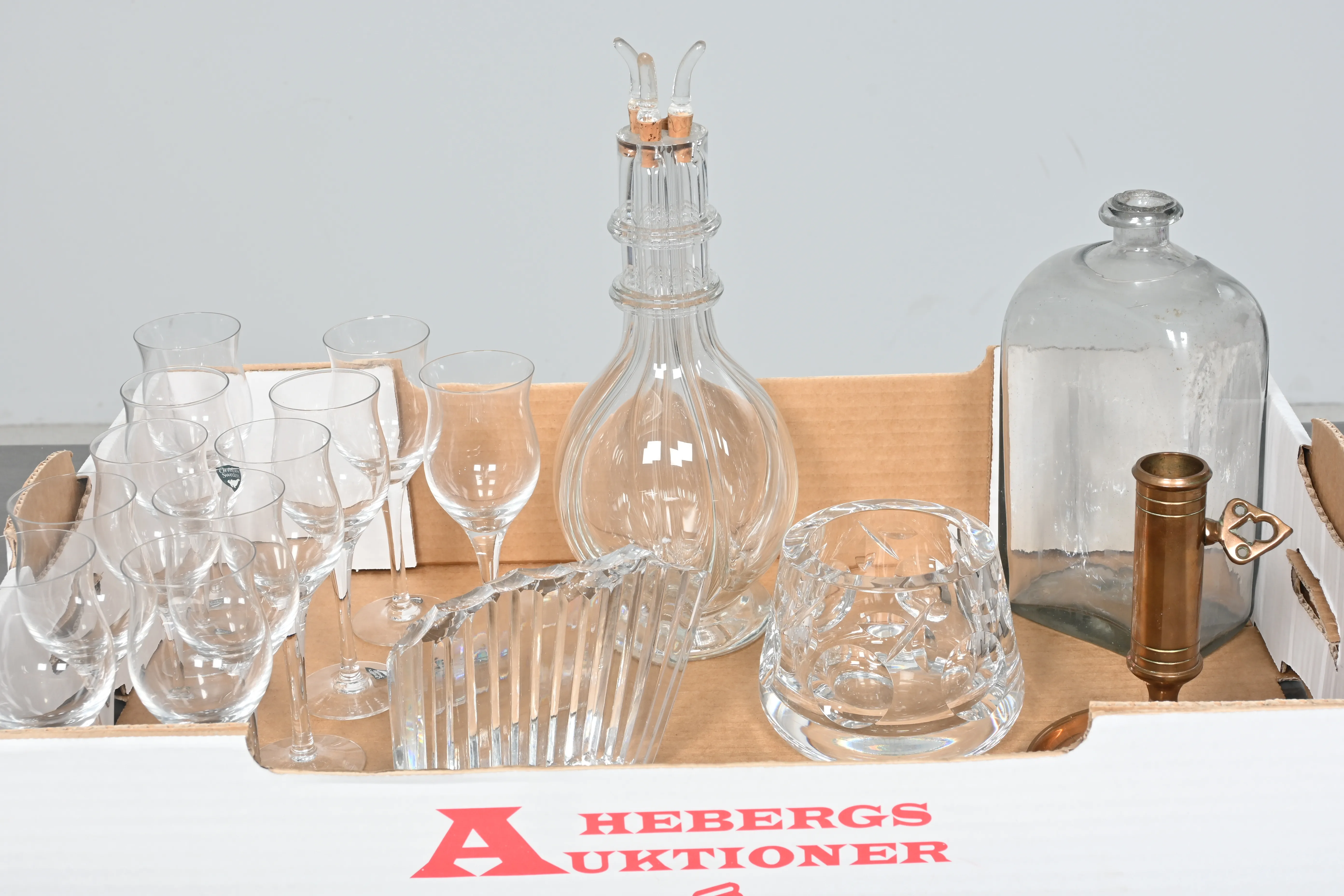 Visning: Torsdag 26/3 Kl 16-19 Lördag 28/3 11-14. Utlämning Söndag 29/3 ca 13:15 till 19:30 Måndag 30/3 8-12 och 14-18 Tisdag 31/3 8-12 och 14-16____________________________________________________________________________________________________________________________________________________________________________________________________________- Lägsta möjliga bud är 100 kr. På alla klubbade priser tillkommer Köparprovision 10% och slagavgift på 40 kr per objekt (inklusive moms). Vissa konstföremål kan vara belagda med konstnärsavgift, s.k. Droit de Suite eller följerätt. Betalning och avhämtning av inropade objekt måste ske söndag eller måndagen efter auktionen. Magasineringsavgift kan tillkomma på föremål som inte avhämtas inom angiven tid. Föremål som är betalda och inte hämtade inom två månader skänkes till Lions eller säljes, överskottet efter lagringskostnad skänks till välgörande ändamål. Föremål som säljs på auktion är begagnade och säljs i befintligt skick. Det ankommer på köparen att undersöka föremålen och förvissa sig om skicket. Betalning Du kan betala med kort på "Mina Sidor" via din internetbank, eller med Swish, ange alltid kundnummer. Objektsbeskrivning Objektens beskrivning återspeglar Hebergs Auktioner uppfattning om objekten. Hebergs Auktioner ansvarar inte för skador som förbigåtts vid besiktningen. Hebergs Auktioner ansvarar inte för eventuella felaktigheter i katalogtexten. Bilder i katalogen är till för identifierings- syfte och återspeglar inte nödvändigtvis objektens kondition. Ändringar i katalogtext kan förekomma efter att katalogen tryckts/publicerats. Sent inkomna ändringar meddelas muntligen vid försäljningstillfället. Ur och tekniska föremål säljs som samlarföremål och Hebergs Auktioner kan inte garantera att de är i fungerande skick. Köparens undersökningsplikt gäller. Om Hebergs Auktioner efter begäran från köparen har lämnat en konditionsrapport om ett föremåls kondition skall uppgifterna endast behandlas som vägledning för köparen och befriar inte köparen från dennes undersökningsplikt. Lagen om 14 dagars ångerrätt vid auktionsköp gäller inte här där du har möjlighet att lämna bud på plats. Det framgår av distans- och hemförsäljningslagen ___________________________________________________________________________________________________________________________________________________________________________________________________________________________ Vi kan skicka mindre föremål som inte är ömtåliga med postnord det är postnords prislista över disk som gäller plus moms. Vi skickar inga möbler, tavlor, porslinsföremål, glasföremål m.m