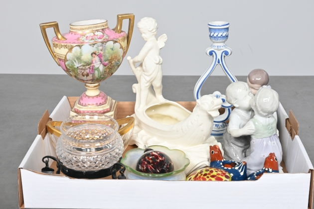 Visning: Torsdag 26/3 Kl 16-19 Lördag 28/3 11-14. Utlämning Söndag 29/3 ca 13:15 till 19:30 Måndag 30/3 8-12 och 14-18 Tisdag 31/3 8-12 och 14-16____________________________________________________________________________________________________________________________________________________________________________________________________________- Lägsta möjliga bud är 100 kr. På alla klubbade priser tillkommer Köparprovision 10% och slagavgift på 40 kr per objekt (inklusive moms). Vissa konstföremål kan vara belagda med konstnärsavgift, s.k. Droit de Suite eller följerätt. Betalning och avhämtning av inropade objekt måste ske söndag eller måndagen efter auktionen. Magasineringsavgift kan tillkomma på föremål som inte avhämtas inom angiven tid. Föremål som är betalda och inte hämtade inom två månader skänkes till Lions eller säljes, överskottet efter lagringskostnad skänks till välgörande ändamål. Föremål som säljs på auktion är begagnade och säljs i befintligt skick. Det ankommer på köparen att undersöka föremålen och förvissa sig om skicket. Betalning Du kan betala med kort på "Mina Sidor" via din internetbank, eller med Swish, ange alltid kundnummer. Objektsbeskrivning Objektens beskrivning återspeglar Hebergs Auktioner uppfattning om objekten. Hebergs Auktioner ansvarar inte för skador som förbigåtts vid besiktningen. Hebergs Auktioner ansvarar inte för eventuella felaktigheter i katalogtexten. Bilder i katalogen är till för identifierings- syfte och återspeglar inte nödvändigtvis objektens kondition. Ändringar i katalogtext kan förekomma efter att katalogen tryckts/publicerats. Sent inkomna ändringar meddelas muntligen vid försäljningstillfället. Ur och tekniska föremål säljs som samlarföremål och Hebergs Auktioner kan inte garantera att de är i fungerande skick. Köparens undersökningsplikt gäller. Om Hebergs Auktioner efter begäran från köparen har lämnat en konditionsrapport om ett föremåls kondition skall uppgifterna endast behandlas som vägledning för köparen och befriar inte köparen från dennes undersökningsplikt. Lagen om 14 dagars ångerrätt vid auktionsköp gäller inte här där du har möjlighet att lämna bud på plats. Det framgår av distans- och hemförsäljningslagen ___________________________________________________________________________________________________________________________________________________________________________________________________________________________ Vi kan skicka mindre föremål som inte är ömtåliga med postnord det är postnords prislista över disk som gäller plus moms. Vi skickar inga möbler, tavlor, porslinsföremål, glasföremål m.m