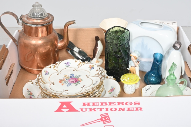 ____________________________________________________________________________________________________________________________________________________________________________________________________________- Lägsta möjliga bud är 100 kr. På alla klubbade priser tillkommer Köparprovision 10% och slagavgift på 40 kr per objekt (inklusive moms). Vissa konstföremål kan vara belagda med konstnärsavgift, s.k. Droit de Suite eller följerätt. Betalning och avhämtning av inropade objekt måste ske söndag eller måndagen efter auktionen. Magasineringsavgift kan tillkomma på föremål som inte avhämtas inom angiven tid. Föremål som är betalda och inte hämtade inom två månader skänkes till Lions eller säljes, överskottet efter lagringskostnad skänks till välgörande ändamål. Föremål som säljs på auktion är begagnade och säljs i befintligt skick. Det ankommer på köparen att undersöka föremålen och förvissa sig om skicket. Betalning Du kan betala med kort på "Mina Sidor" via din internetbank, eller med Swish, ange alltid kundnummer. Objektsbeskrivning Objektens beskrivning återspeglar Hebergs Auktioner uppfattning om objekten. Hebergs Auktioner ansvarar inte för skador som förbigåtts vid besiktningen. Hebergs Auktioner ansvarar inte för eventuella felaktigheter i katalogtexten. Bilder i katalogen är till för identifierings- syfte och återspeglar inte nödvändigtvis objektens kondition. Ändringar i katalogtext kan förekomma efter att katalogen tryckts/publicerats. Sent inkomna ändringar meddelas muntligen vid försäljningstillfället. Ur och tekniska föremål säljs som samlarföremål och Hebergs Auktioner kan inte garantera att de är i fungerande skick. Köparens undersökningsplikt gäller. Om Hebergs Auktioner efter begäran från köparen har lämnat en konditionsrapport om ett föremåls kondition skall uppgifterna endast behandlas som vägledning för köparen och befriar inte köparen från dennes undersökningsplikt. Lagen om 14 dagars ångerrätt vid auktionsköp gäller inte här där du har möjlighet att lämna bud på plats. Det framgår av distans- och hemförsäljningslagen ___________________________________________________________________________________________________________________________________________________________________________________________________________________________ Vi kan skicka mindre föremål som inte är ömtåliga med postnord det är postnords prislista över disk som gäller plus moms. Vi skickar inga möbler, tavlor, porslinsföremål, glasföremål m.m