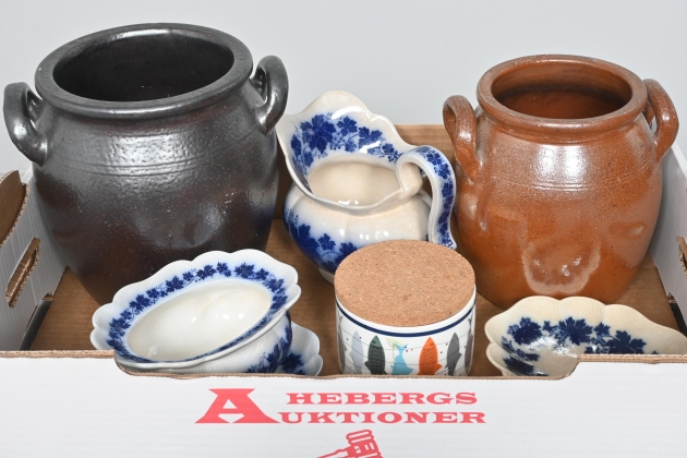 ____________________________________________________________________________________________________________________________________________________________________________________________________________- Lägsta möjliga bud är 100 kr. På alla klubbade priser tillkommer Köparprovision 10% och slagavgift på 40 kr per objekt (inklusive moms). Vissa konstföremål kan vara belagda med konstnärsavgift, s.k. Droit de Suite eller följerätt. Betalning och avhämtning av inropade objekt måste ske söndag eller måndagen efter auktionen. Magasineringsavgift kan tillkomma på föremål som inte avhämtas inom angiven tid. Föremål som är betalda och inte hämtade inom två månader skänkes till Lions eller säljes, överskottet efter lagringskostnad skänks till välgörande ändamål. Föremål som säljs på auktion är begagnade och säljs i befintligt skick. Det ankommer på köparen att undersöka föremålen och förvissa sig om skicket. Betalning Du kan betala med kort på "Mina Sidor" via din internetbank, eller med Swish, ange alltid kundnummer. Objektsbeskrivning Objektens beskrivning återspeglar Hebergs Auktioner uppfattning om objekten. Hebergs Auktioner ansvarar inte för skador som förbigåtts vid besiktningen. Hebergs Auktioner ansvarar inte för eventuella felaktigheter i katalogtexten. Bilder i katalogen är till för identifierings- syfte och återspeglar inte nödvändigtvis objektens kondition. Ändringar i katalogtext kan förekomma efter att katalogen tryckts/publicerats. Sent inkomna ändringar meddelas muntligen vid försäljningstillfället. Ur och tekniska föremål säljs som samlarföremål och Hebergs Auktioner kan inte garantera att de är i fungerande skick. Köparens undersökningsplikt gäller. Om Hebergs Auktioner efter begäran från köparen har lämnat en konditionsrapport om ett föremåls kondition skall uppgifterna endast behandlas som vägledning för köparen och befriar inte köparen från dennes undersökningsplikt. Lagen om 14 dagars ångerrätt vid auktionsköp gäller inte här där du har möjlighet att lämna bud på plats. Det framgår av distans- och hemförsäljningslagen ___________________________________________________________________________________________________________________________________________________________________________________________________________________________ Vi kan skicka mindre föremål som inte är ömtåliga med postnord det är postnords prislista över disk som gäller plus moms. Vi skickar inga möbler, tavlor, porslinsföremål, glasföremål m.m