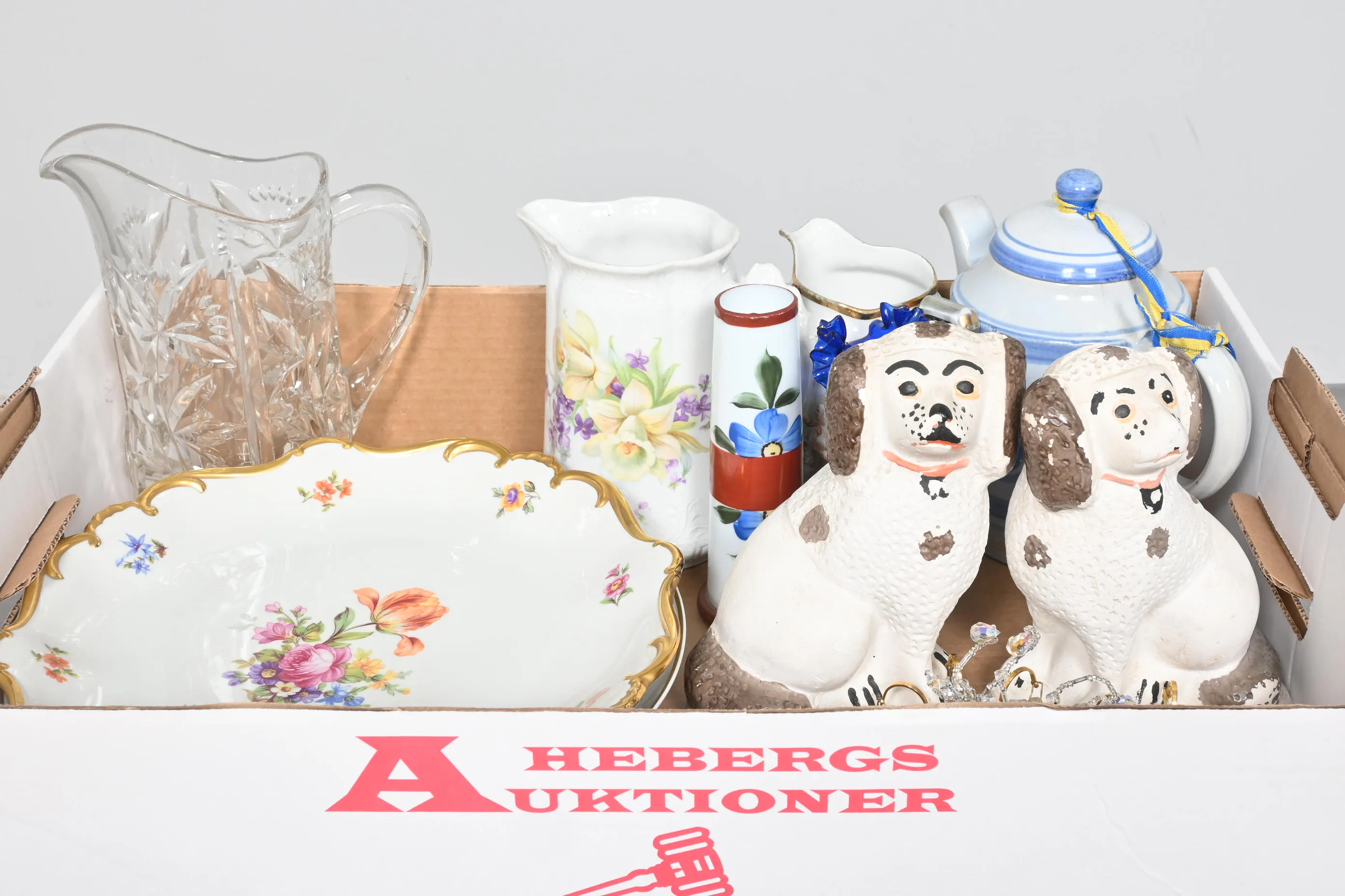 Visning: Torsdag 21/5 Kl 16-19 Lördag 23/5 11-14. Utlämning Söndag 24/5 ca 13:15 till 19:30 Måndag 25/5 8-12 och 14-18 Tisdag 26/5 8-12 och 14-16____________________________________________________________________________________________________________________________________________________________________________________________________________- Lägsta möjliga bud är 100 kr. På alla klubbade priser tillkommer Köparprovision 10% och slagavgift på 40 kr per objekt (inklusive moms). Vissa konstföremål kan vara belagda med konstnärsavgift, s.k. Droit de Suite eller följerätt. Betalning och avhämtning av inropade objekt måste ske söndag eller måndagen efter auktionen. Magasineringsavgift kan tillkomma på föremål som inte avhämtas inom angiven tid. Föremål som är betalda och inte hämtade inom två månader skänkes till Lions eller säljes, överskottet efter lagringskostnad skänks till välgörande ändamål. Föremål som säljs på auktion är begagnade och säljs i befintligt skick. Det ankommer på köparen att undersöka föremålen och förvissa sig om skicket. Betalning Du kan betala med kort på "Mina Sidor" via din internetbank, eller med Swish, ange alltid kundnummer. Objektsbeskrivning Objektens beskrivning återspeglar Hebergs Auktioner uppfattning om objekten. Hebergs Auktioner ansvarar inte för skador som förbigåtts vid besiktningen. Hebergs Auktioner ansvarar inte för eventuella felaktigheter i katalogtexten. Bilder i katalogen är till för identifierings- syfte och återspeglar inte nödvändigtvis objektens kondition. Ändringar i katalogtext kan förekomma efter att katalogen tryckts/publicerats. Sent inkomna ändringar meddelas muntligen vid försäljningstillfället. Ur och tekniska föremål säljs som samlarföremål och Hebergs Auktioner kan inte garantera att de är i fungerande skick. Köparens undersökningsplikt gäller. Om Hebergs Auktioner efter begäran från köparen har lämnat en konditionsrapport om ett föremåls kondition skall uppgifterna endast behandlas som vägledning för köparen och befriar inte köparen från dennes undersökningsplikt. Lagen om 14 dagars ångerrätt vid auktionsköp gäller inte här där du har möjlighet att lämna bud på plats. Det framgår av distans- och hemförsäljningslagen ___________________________________________________________________________________________________________________________________________________________________________________________________________________________ Vi kan skicka mindre föremål som inte är ömtåliga med postnord det är postnords prislista över disk som gäller plus moms. Vi skickar inga möbler, tavlor, porslinsföremål, glasföremål m.m
