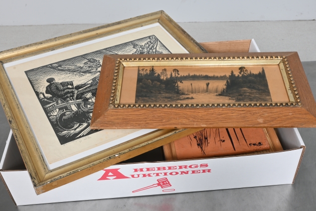 Visning: Torsdag 26/3 Kl 16-19 Lördag 28/3 11-14. Utlämning Söndag 29/3 ca 13:15 till 19:30 Måndag 30/3 8-12 och 14-18 Tisdag 31/3 8-12 och 14-16____________________________________________________________________________________________________________________________________________________________________________________________________________- Lägsta möjliga bud är 100 kr. På alla klubbade priser tillkommer Köparprovision 10% och slagavgift på 40 kr per objekt (inklusive moms). Vissa konstföremål kan vara belagda med konstnärsavgift, s.k. Droit de Suite eller följerätt. Betalning och avhämtning av inropade objekt måste ske söndag eller måndagen efter auktionen. Magasineringsavgift kan tillkomma på föremål som inte avhämtas inom angiven tid. Föremål som är betalda och inte hämtade inom två månader skänkes till Lions eller säljes, överskottet efter lagringskostnad skänks till välgörande ändamål. Föremål som säljs på auktion är begagnade och säljs i befintligt skick. Det ankommer på köparen att undersöka föremålen och förvissa sig om skicket. Betalning Du kan betala med kort på "Mina Sidor" via din internetbank, eller med Swish, ange alltid kundnummer. Objektsbeskrivning Objektens beskrivning återspeglar Hebergs Auktioner uppfattning om objekten. Hebergs Auktioner ansvarar inte för skador som förbigåtts vid besiktningen. Hebergs Auktioner ansvarar inte för eventuella felaktigheter i katalogtexten. Bilder i katalogen är till för identifierings- syfte och återspeglar inte nödvändigtvis objektens kondition. Ändringar i katalogtext kan förekomma efter att katalogen tryckts/publicerats. Sent inkomna ändringar meddelas muntligen vid försäljningstillfället. Ur och tekniska föremål säljs som samlarföremål och Hebergs Auktioner kan inte garantera att de är i fungerande skick. Köparens undersökningsplikt gäller. Om Hebergs Auktioner efter begäran från köparen har lämnat en konditionsrapport om ett föremåls kondition skall uppgifterna endast behandlas som vägledning för köparen och befriar inte köparen från dennes undersökningsplikt. Lagen om 14 dagars ångerrätt vid auktionsköp gäller inte här där du har möjlighet att lämna bud på plats. Det framgår av distans- och hemförsäljningslagen ___________________________________________________________________________________________________________________________________________________________________________________________________________________________ Vi kan skicka mindre föremål som inte är ömtåliga med postnord det är postnords prislista över disk som gäller plus moms. Vi skickar inga möbler, tavlor, porslinsföremål, glasföremål m.m