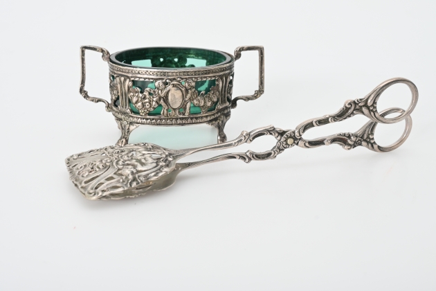 752. Kaktång, Saltkar i silver, silvervikt ca 128 gr