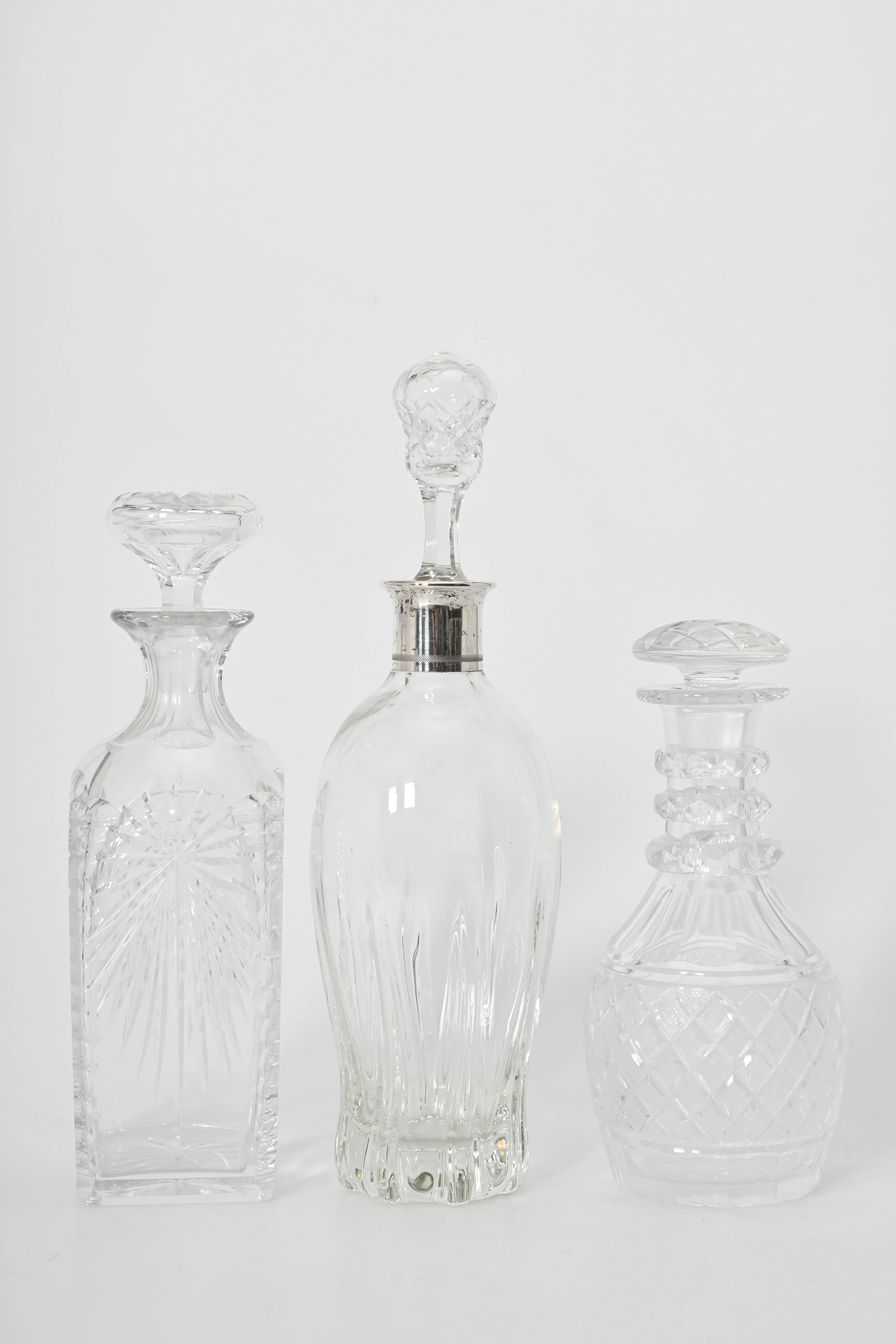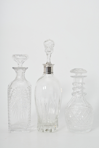 797. Kristallkaraffer en med silverhals
