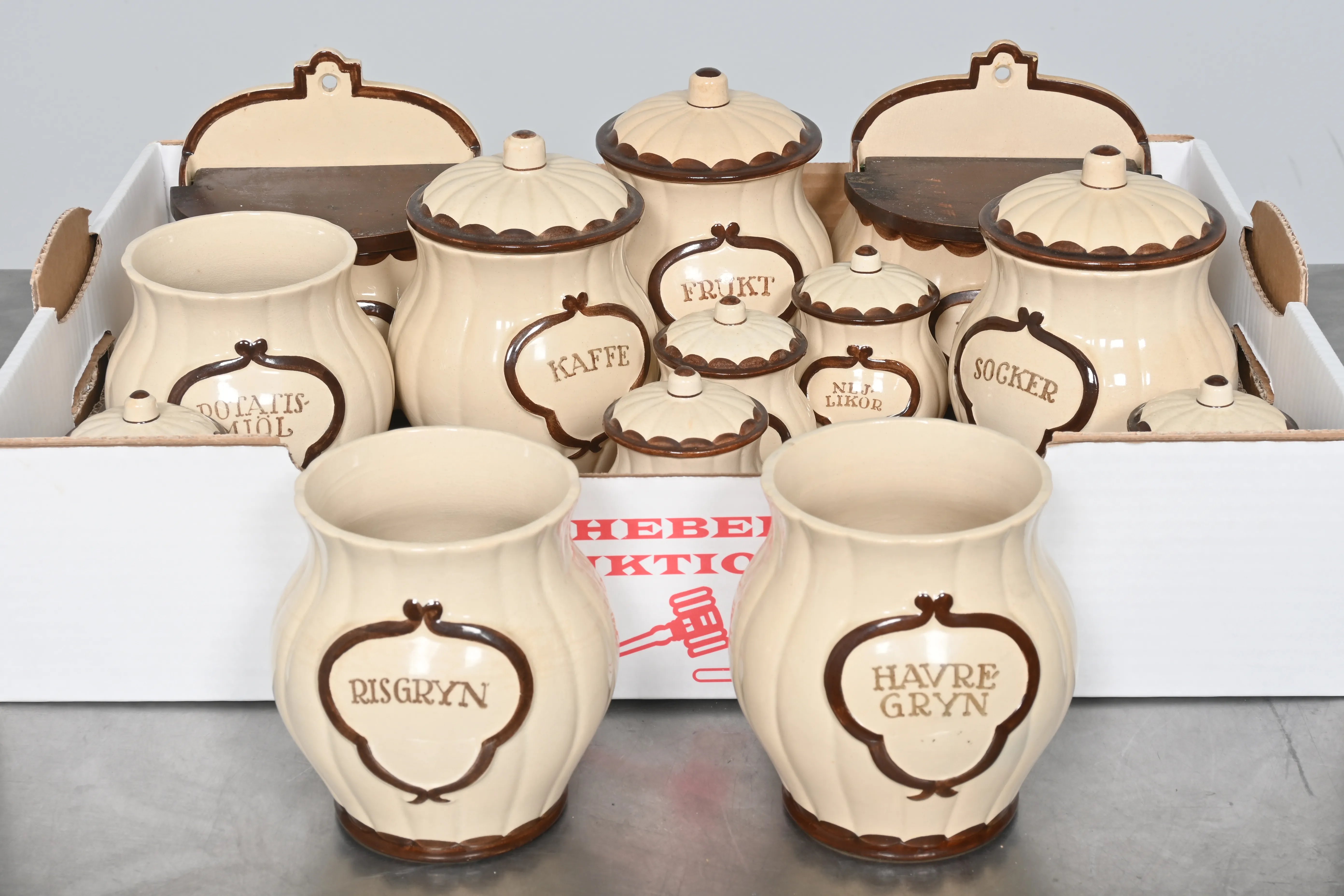 Visning: Torsdag 25/9 Kl 16-19 Lördag 27/9 11-14. Utlämning Söndag 28/9 13:00 till 19:30 Måndag 29/9 8-12 och 14-18 Tisdag 30/9 8-12 och 14-16____________________________________________________________________________________________________________________________________________________________________________________________________________- Lägsta möjliga bud är 100 kr. På alla klubbade priser tillkommer Köparprovision 10% och slagavgift på 40 kr per objekt (inklusive moms). Vissa konstföremål kan vara belagda med konstnärsavgift, s.k. Droit de Suite eller följerätt. Betalning och avhämtning av inropade objekt måste ske söndag eller måndagen efter auktionen. Magasineringsavgift kan tillkomma på föremål som inte avhämtas inom angiven tid. Föremål som är betalda och inte hämtade inom två månader skänkes till Lions eller säljes, överskottet efter lagringskostnad skänks till välgörande ändamål. Föremål som säljs på auktion är begagnade och säljs i befintligt skick. Det ankommer på köparen att undersöka föremålen och förvissa sig om skicket. Betalning Du kan betala med kort på "Mina Sidor" via din internetbank, eller med Swish, ange alltid kundnummer. Objektsbeskrivning Objektens beskrivning återspeglar Hebergs Auktioner uppfattning om objekten. Hebergs Auktioner ansvarar inte för skador som förbigåtts vid besiktningen. Hebergs Auktioner ansvarar inte för eventuella felaktigheter i katalogtexten. Bilder i katalogen är till för identifierings- syfte och återspeglar inte nödvändigtvis objektens kondition. Ändringar i katalogtext kan förekomma efter att katalogen tryckts/publicerats. Sent inkomna ändringar meddelas muntligen vid försäljningstillfället. Ur och tekniska föremål säljs som samlarföremål och Hebergs Auktioner kan inte garantera att de är i fungerande skick. Köparens undersökningsplikt gäller. Om Hebergs Auktioner efter begäran från köparen har lämnat en konditionsrapport om ett föremåls kondition skall uppgifterna endast behandlas som vägledning för köparen och befriar inte köparen från dennes undersökningsplikt. Lagen om 14 dagars ångerrätt vid auktionsköp gäller inte här där du har möjlighet att lämna bud på plats. Det framgår av distans- och hemförsäljningslagen ___________________________________________________________________________________________________________________________________________________________________________________________________________________________ Vi kan skicka mindre föremål som inte är ömtåliga med postnord det är postnords prislista över disk som gäller plus moms. Vi skickar inga möbler, tavlor, porslinsföremål, glasföremål m.m