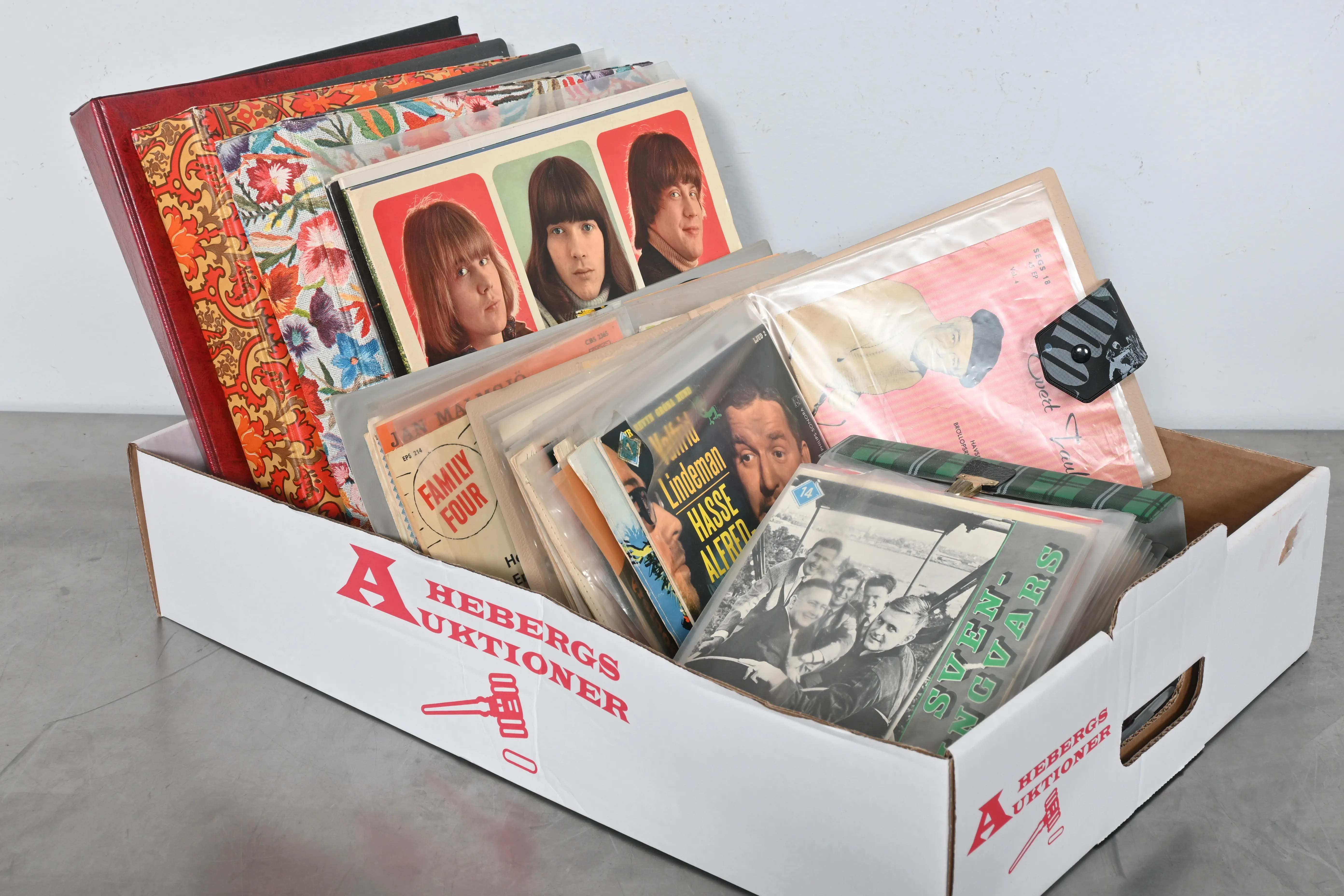 Visning: Torsdag 25/9 Kl 16-19 Lördag 27/9 11-14. Utlämning Söndag 28/9 13:00 till 19:30 Måndag 29/9 8-12 och 14-18 Tisdag 30/9 8-12 och 14-16____________________________________________________________________________________________________________________________________________________________________________________________________________- Lägsta möjliga bud är 100 kr. På alla klubbade priser tillkommer Köparprovision 10% och slagavgift på 40 kr per objekt (inklusive moms). Vissa konstföremål kan vara belagda med konstnärsavgift, s.k. Droit de Suite eller följerätt. Betalning och avhämtning av inropade objekt måste ske söndag eller måndagen efter auktionen. Magasineringsavgift kan tillkomma på föremål som inte avhämtas inom angiven tid. Föremål som är betalda och inte hämtade inom två månader skänkes till Lions eller säljes, överskottet efter lagringskostnad skänks till välgörande ändamål. Föremål som säljs på auktion är begagnade och säljs i befintligt skick. Det ankommer på köparen att undersöka föremålen och förvissa sig om skicket. Betalning Du kan betala med kort på "Mina Sidor" via din internetbank, eller med Swish, ange alltid kundnummer. Objektsbeskrivning Objektens beskrivning återspeglar Hebergs Auktioner uppfattning om objekten. Hebergs Auktioner ansvarar inte för skador som förbigåtts vid besiktningen. Hebergs Auktioner ansvarar inte för eventuella felaktigheter i katalogtexten. Bilder i katalogen är till för identifierings- syfte och återspeglar inte nödvändigtvis objektens kondition. Ändringar i katalogtext kan förekomma efter att katalogen tryckts/publicerats. Sent inkomna ändringar meddelas muntligen vid försäljningstillfället. Ur och tekniska föremål säljs som samlarföremål och Hebergs Auktioner kan inte garantera att de är i fungerande skick. Köparens undersökningsplikt gäller. Om Hebergs Auktioner efter begäran från köparen har lämnat en konditionsrapport om ett föremåls kondition skall uppgifterna endast behandlas som vägledning för köparen och befriar inte köparen från dennes undersökningsplikt. Lagen om 14 dagars ångerrätt vid auktionsköp gäller inte här där du har möjlighet att lämna bud på plats. Det framgår av distans- och hemförsäljningslagen ___________________________________________________________________________________________________________________________________________________________________________________________________________________________ Vi kan skicka mindre föremål som inte är ömtåliga med postnord det är postnords prislista över disk som gäller plus moms. Vi skickar inga möbler, tavlor, porslinsföremål, glasföremål m.m
