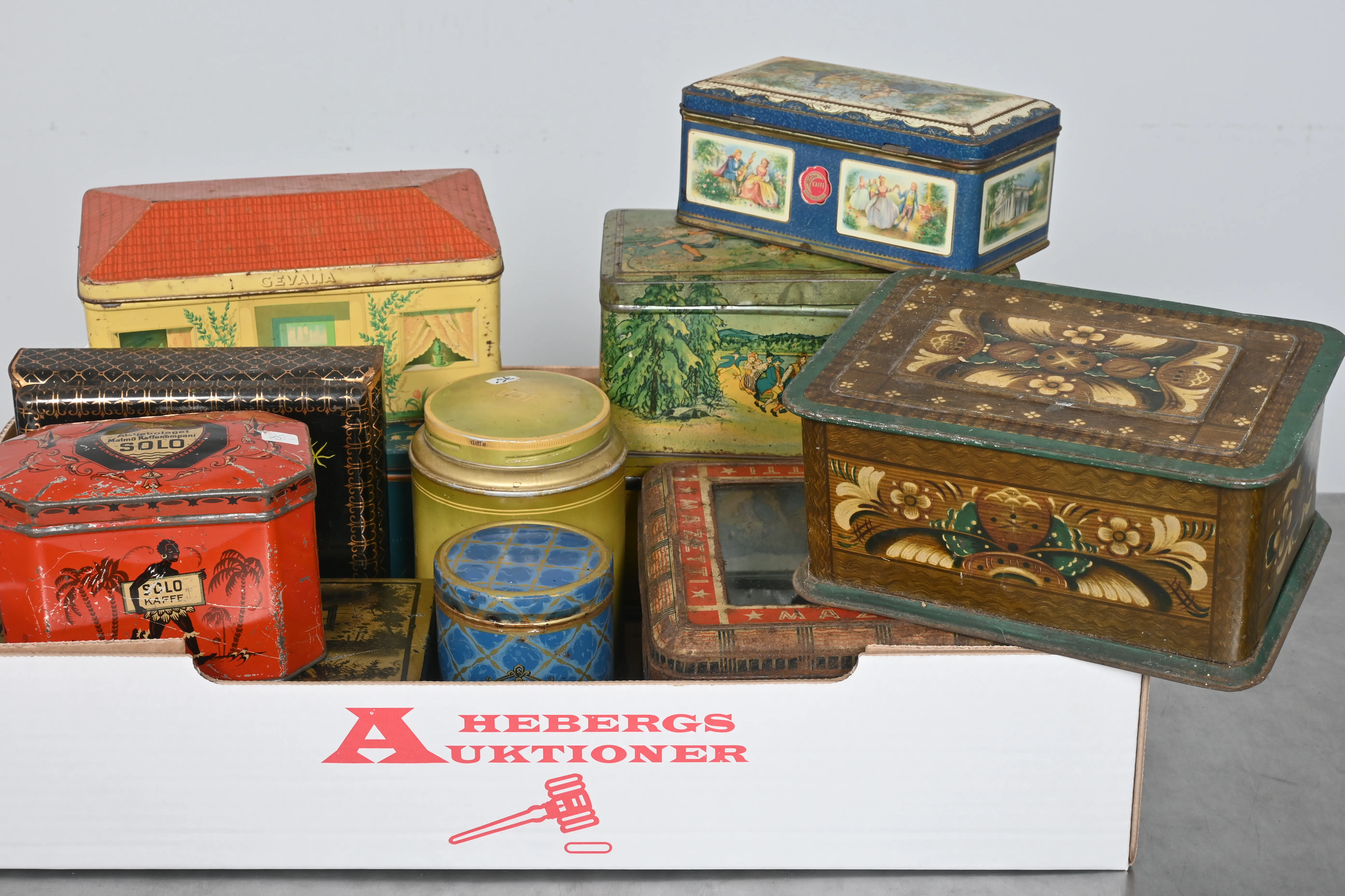 Visning: Torsdag 27/3 Kl 16-19 Lördag 29/3 11-14. Utlämning Söndag 30/3 13:00 till 19:30 Måndag 31/3 8-12 och 14-18 Tisdag 1/4 8-12 och 14-16____________________________________________________________________________________________________________________________________________________________________________________________________________- Lägsta möjliga bud är 100 kr. På alla klubbade priser tillkommer Köparprovision 10% och slagavgift på 40 kr per objekt (inklusive moms). Vissa konstföremål kan vara belagda med konstnärsavgift, s.k. Droit de Suite eller följerätt. Betalning och avhämtning av inropade objekt måste ske söndag eller måndagen efter auktionen. Magasineringsavgift kan tillkomma på föremål som inte avhämtas inom angiven tid. Föremål som är betalda och inte hämtade inom två månader skänkes till Lions eller säljes, överskottet efter lagringskostnad skänks till välgörande ändamål. Föremål som säljs på auktion är begagnade och säljs i befintligt skick. Det ankommer på köparen att undersöka föremålen och förvissa sig om skicket. Betalning Du kan betala med kort på "Mina Sidor" via din internetbank, eller med Swish, ange alltid kundnummer. Objektsbeskrivning Objektens beskrivning återspeglar Hebergs Auktioner uppfattning om objekten. Hebergs Auktioner ansvarar inte för skador som förbigåtts vid besiktningen. Hebergs Auktioner ansvarar inte för eventuella felaktigheter i katalogtexten. Bilder i katalogen är till för identifierings- syfte och återspeglar inte nödvändigtvis objektens kondition. Ändringar i katalogtext kan förekomma efter att katalogen tryckts/publicerats. Sent inkomna ändringar meddelas muntligen vid försäljningstillfället. Ur och tekniska föremål säljs som samlarföremål och Hebergs Auktioner kan inte garantera att de är i fungerande skick. Köparens undersökningsplikt gäller. Om Hebergs Auktioner efter begäran från köparen har lämnat en konditionsrapport om ett föremåls kondition skall uppgifterna endast behandlas som vägledning för köparen och befriar inte köparen från dennes undersökningsplikt. Lagen om 14 dagars ångerrätt vid auktionsköp gäller inte här där du har möjlighet att lämna bud på plats. Det framgår av distans- och hemförsäljningslagen ___________________________________________________________________________________________________________________________________________________________________________________________________________________________ Vi kan skicka mindre föremål som inte är ömtåliga med postnord det är postnords prislista över disk som gäller plus moms. Vid större objekt och ömtåliga saker kan ni kontakta transportfirmorna. ___________________________________________________________________________________________________________________________________________________________________________________________________________________________________________________________________________ Hauges Auktionstransporter Fasta priser inom Sverige och EU. info@hauges.com +46 727 122260 www.hauges.com ___________________________________________________________________________________________________________________________________________________________________________________________________________________________________________________________________________ Vrs Retro Cargo Inforetrocargo@gmail.com 0760677983 Stockholm, Karlstad, Örebro, Malmö, Göteborg ___________________________________________________________________________________________________________________________________________________________________________________________________________________________________________________________________________ JH Packman ApS Nimbusvej 7-9 2670 Greve Tlf: 0045-43735555 Mail: info@jhpackman.dk Web: jhpackman.dk ___________________________________________________________________________________________________________________________________________________________________________________________________________________________________________________________________________ ArtMove Sweden AB Stockholms Frihamn Magasin 6, Entre # 3 Frihamnsgatan 58 115 56 Stockholm Tel 08 450 44 39 Switcboard 08 450 44 60 email : marie@artmove.se www.artmove.se Vi trafikerar Stockholm Göterborg Varberg och Malmö varje vecka där vi kan erbjuda väldigt förmånliga transporter till våra filialer där kunderna själva får hämta sina varor. Vi trafikerar även Köpenhamn London Paris Amsterdam Bryssel och Helsingfors med egna bilar var annan vecka . Vi ordnar även hjälp med kurir flyg och båtfrakt det sköter vi från våra lokaler i Stockholm. __________________________________________________________________________________________________________________________________________________________________________________________________________________________________________________________________________ Falkenbergs Bud & Flyttningsbyrå AB tel: 0346-81639 fax: 0346-16359 email: fbg.flyttningsbyra@outlook.com besöksadress: Cement vägen 3 postadress: Box 290 311 23 FALKENBERG www.budoflytt.com