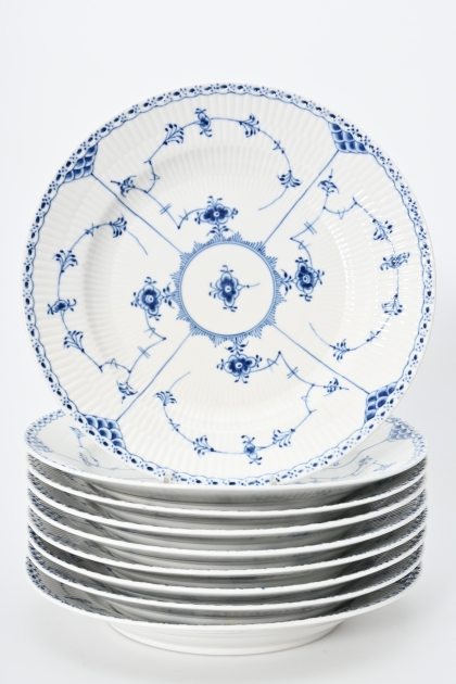864. Royal Copenhagen "Musselmalet" 9 st Mattallrikar