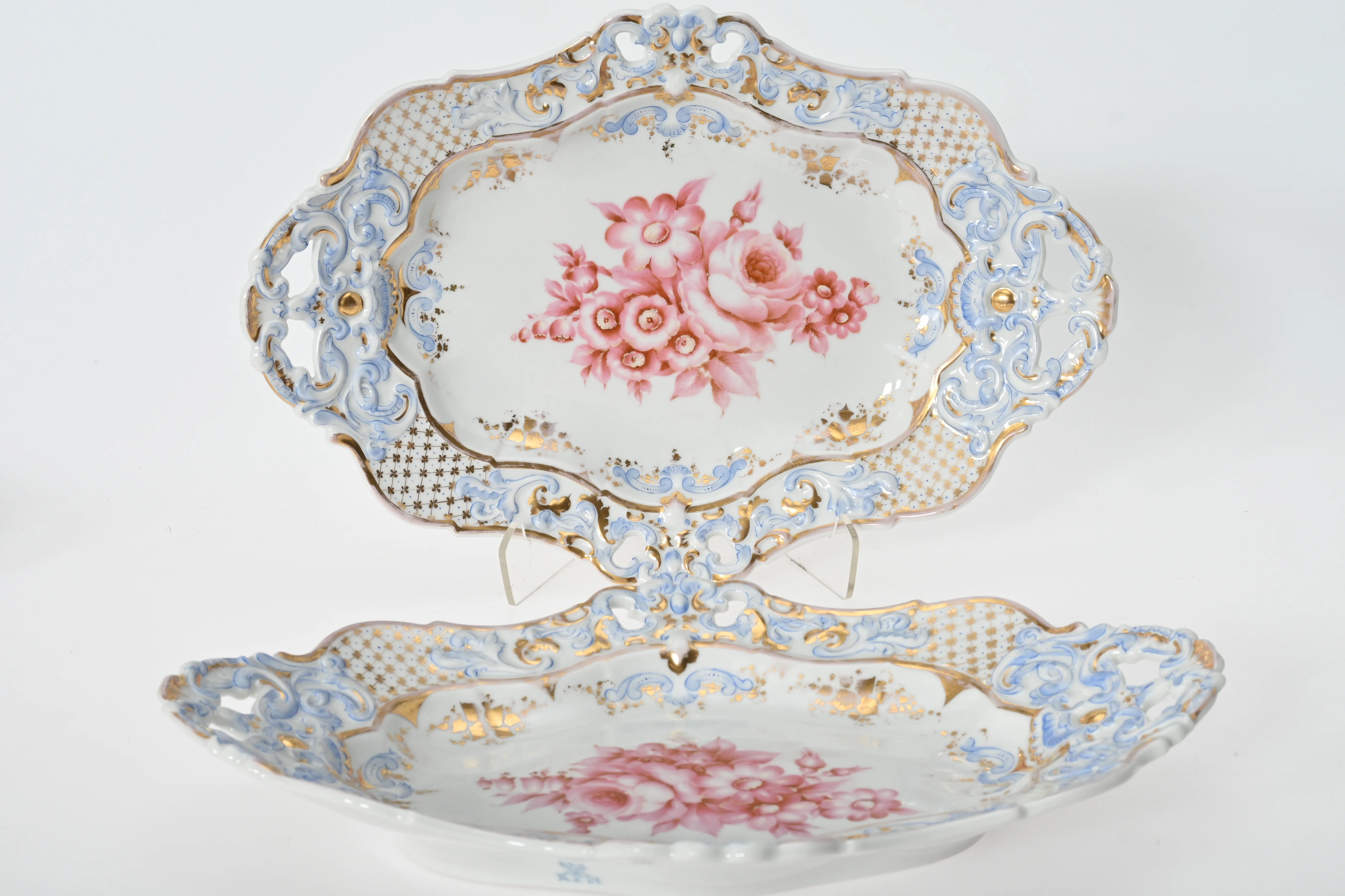 Ett par Krister Porzellan-Manufaktur, målad dekor, längd 38x26 cm