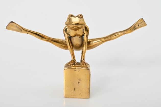 683. Skulptur, Groda, "Look at my legs" patinerad brons