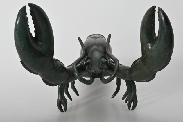 890. Skulptur, hummer, patinerad brons