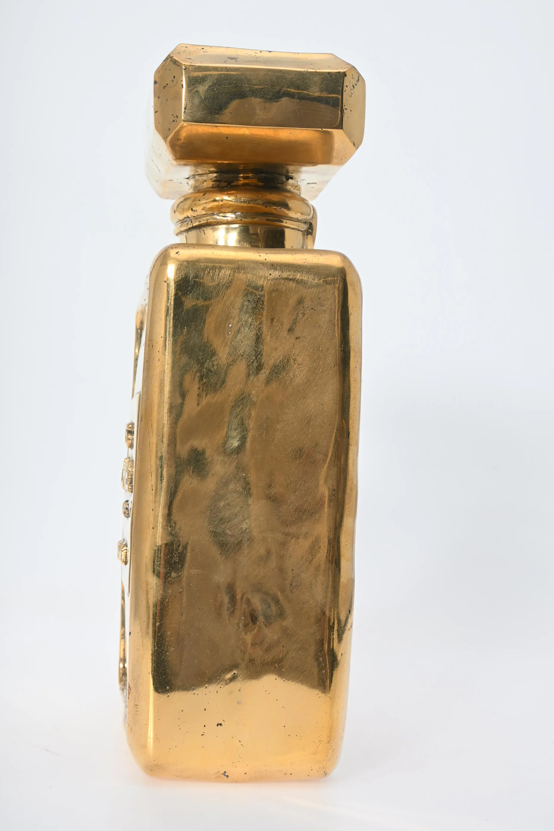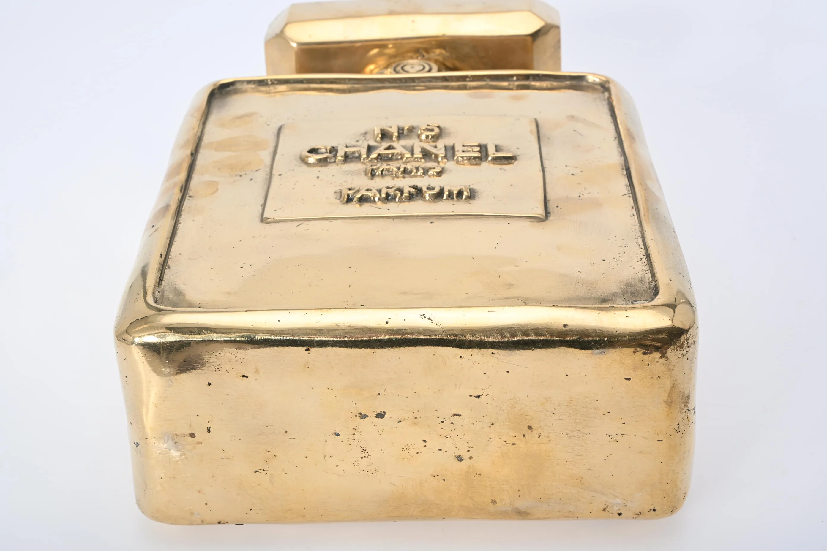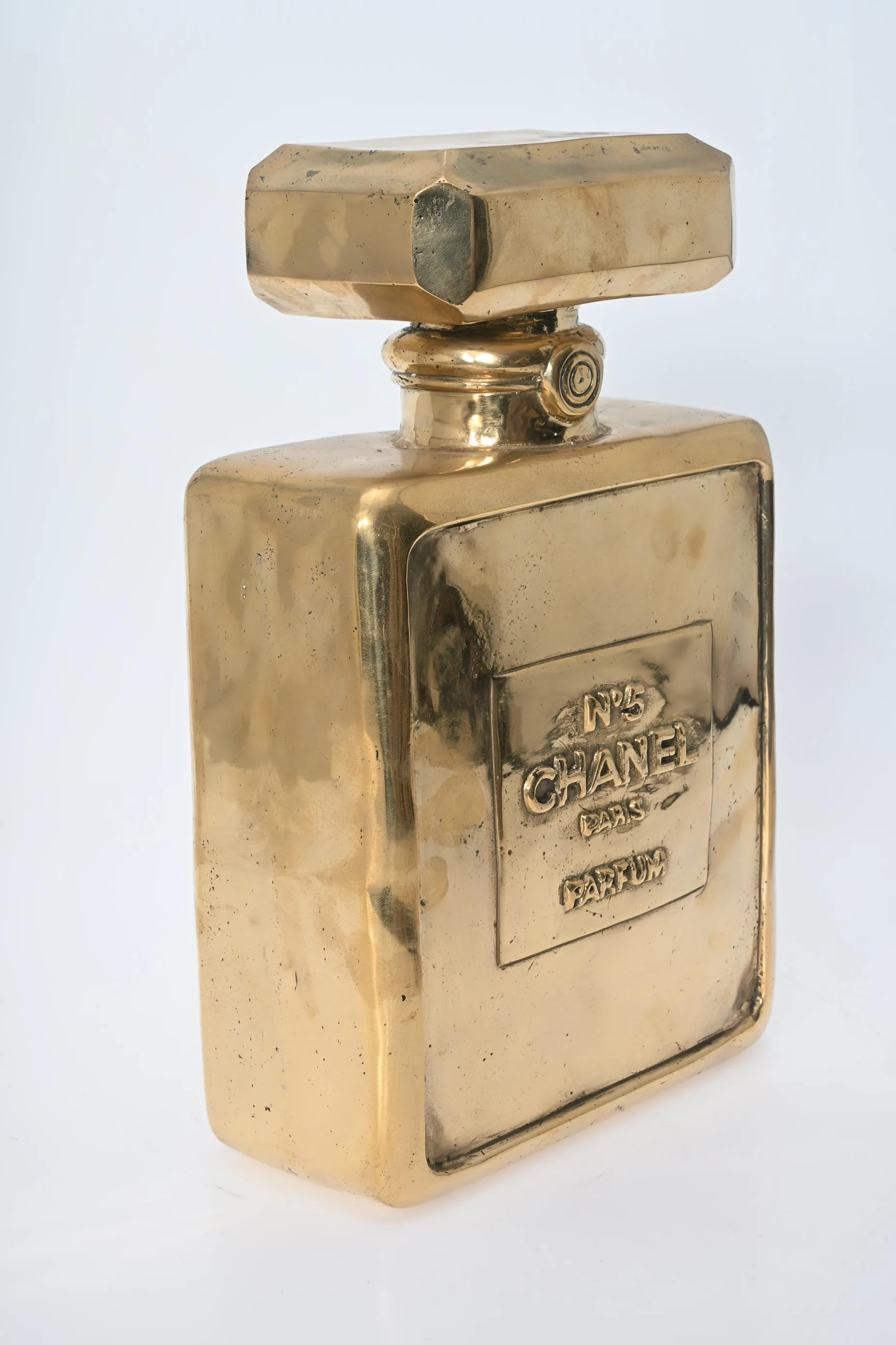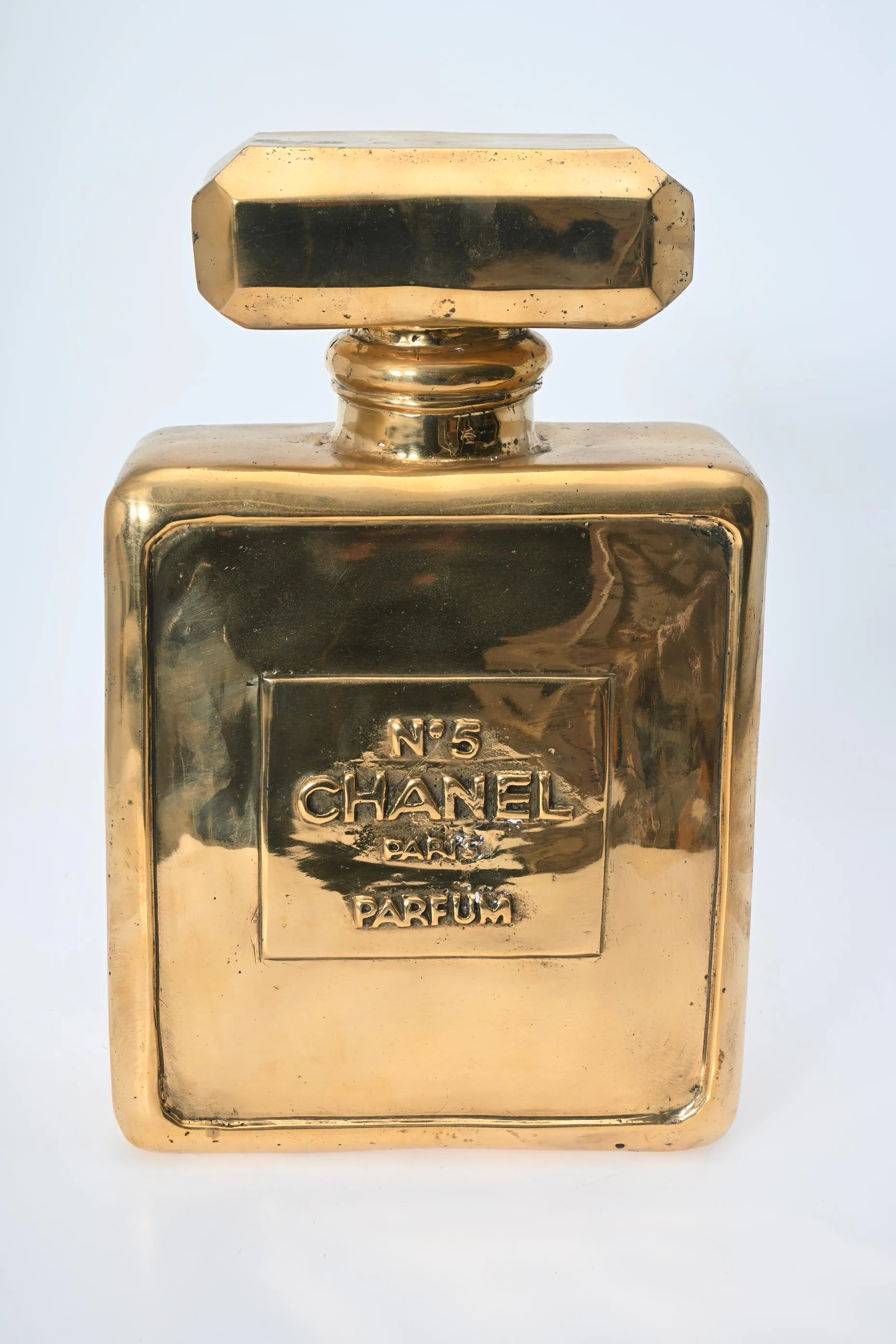 392. Skulptur, Parfymflaska efter "Chanel no 5" Guldpatinerad brons