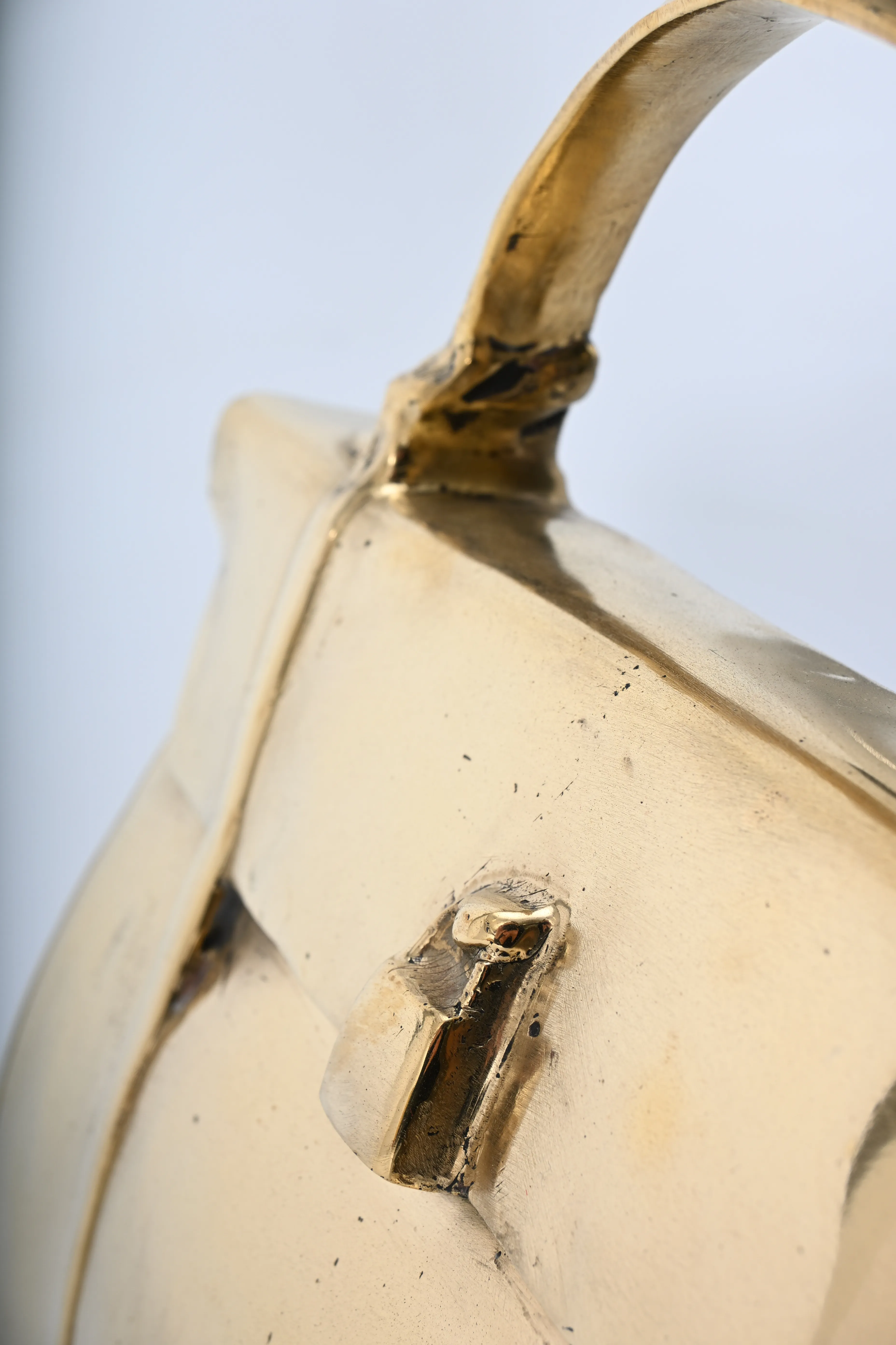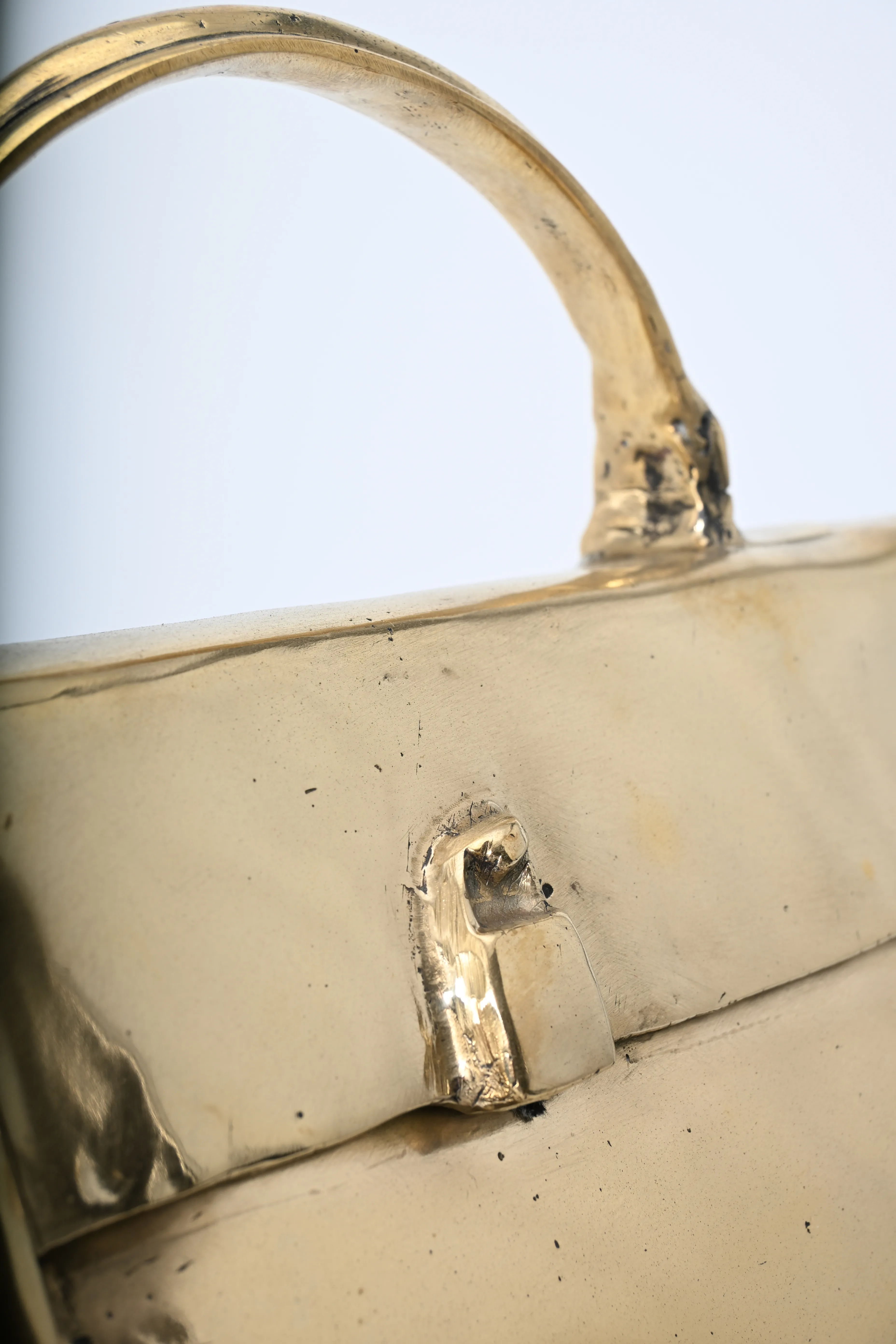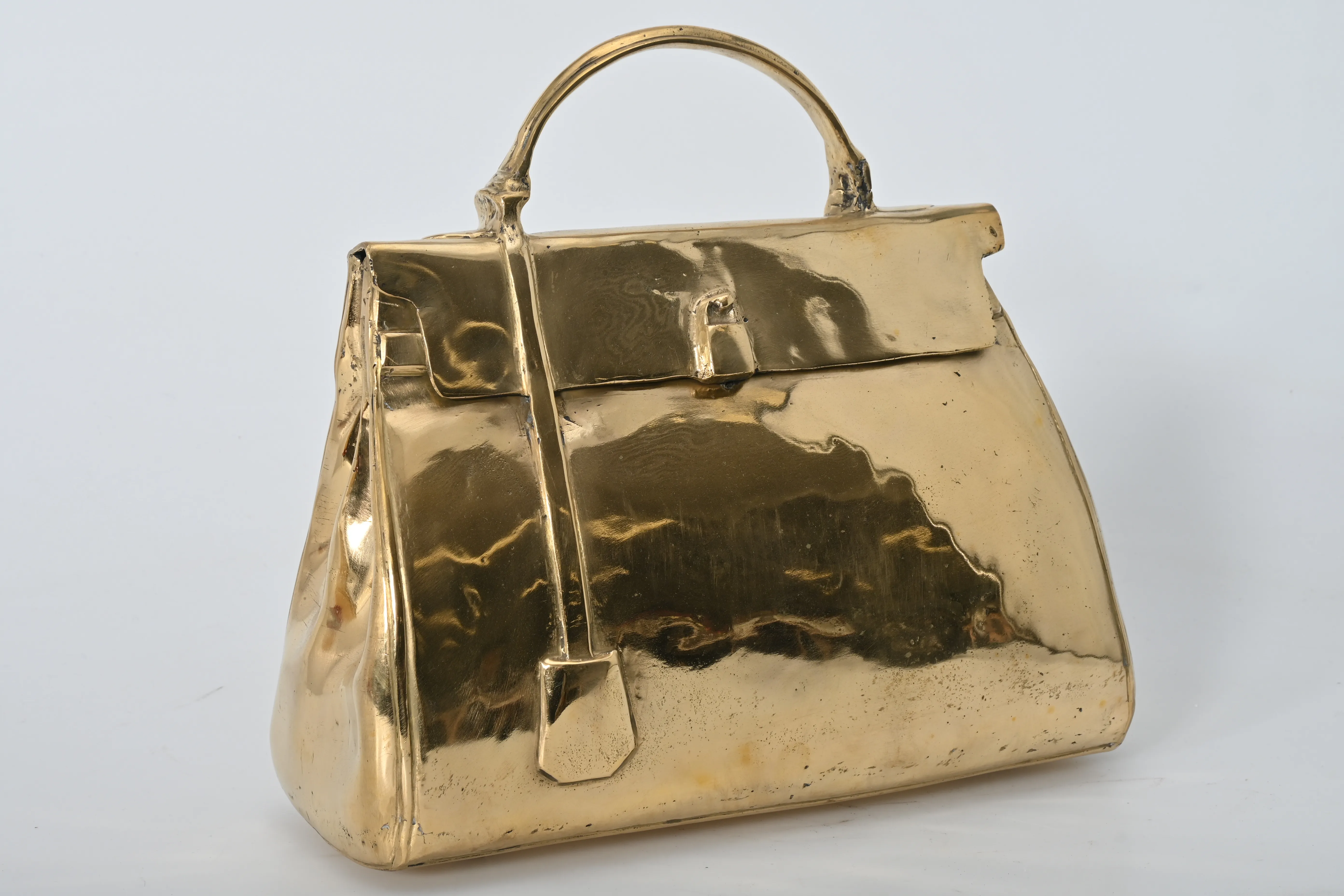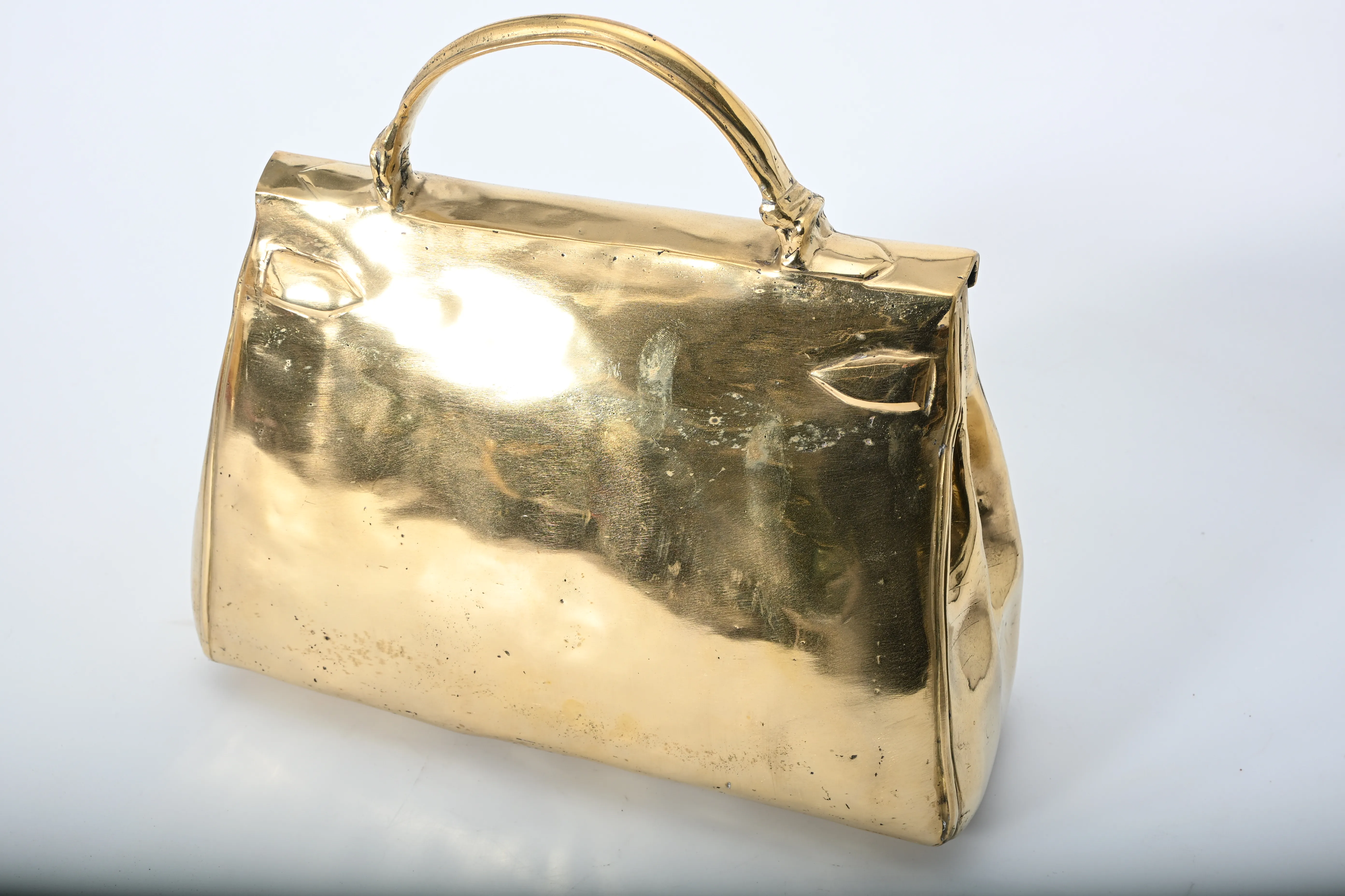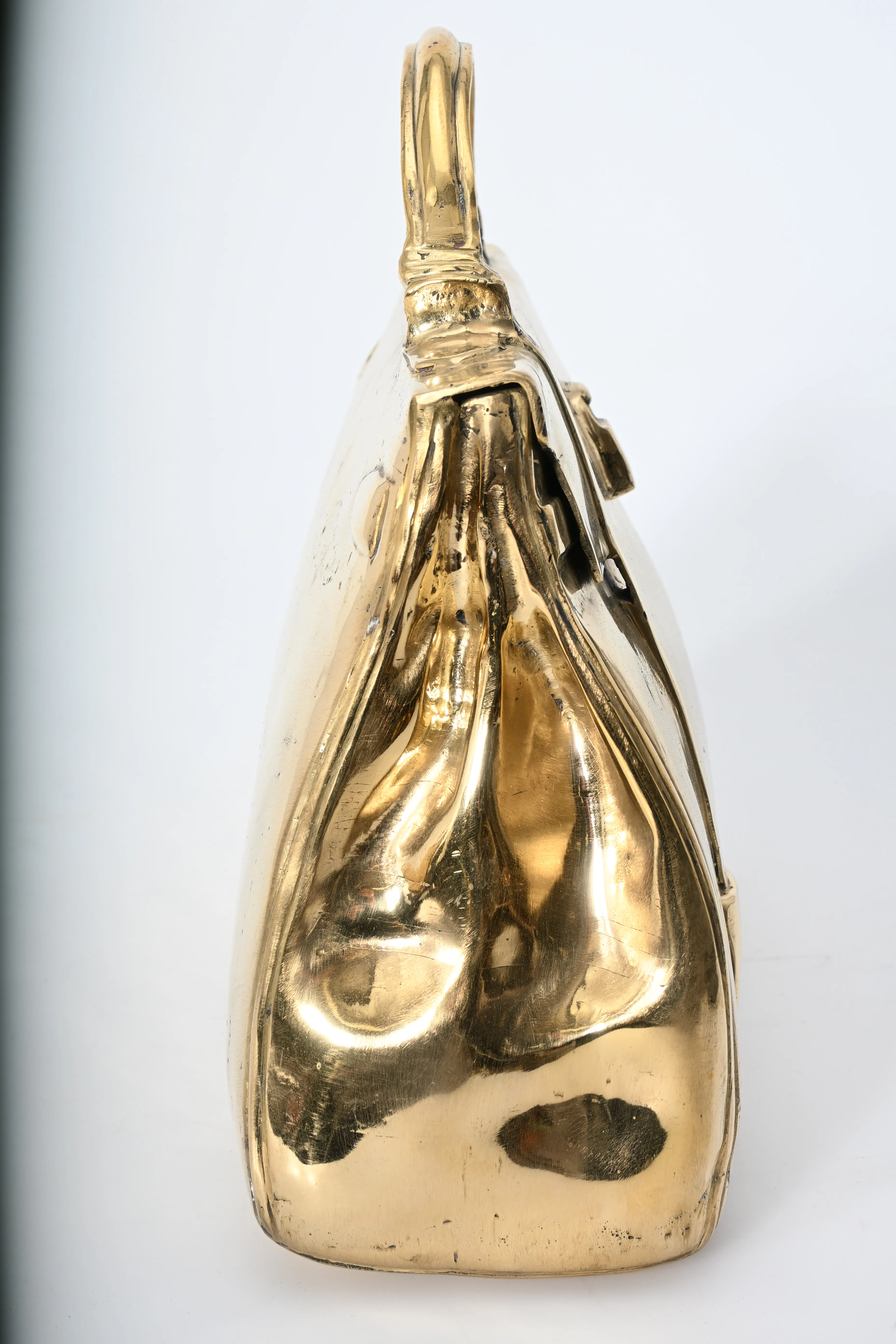 633. Skulptur, Väska efter "Hermes Kelly" Guldpatinerad brons