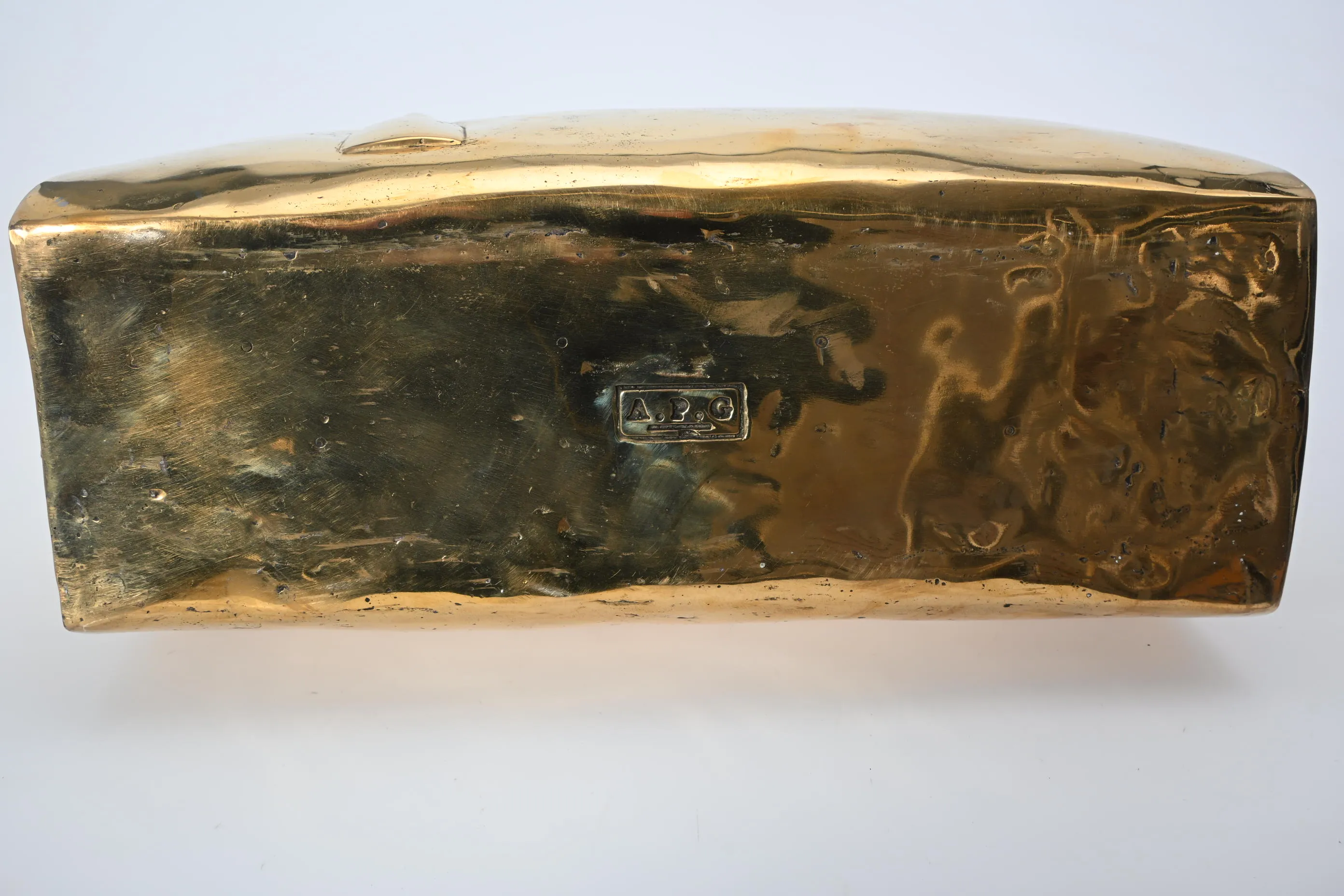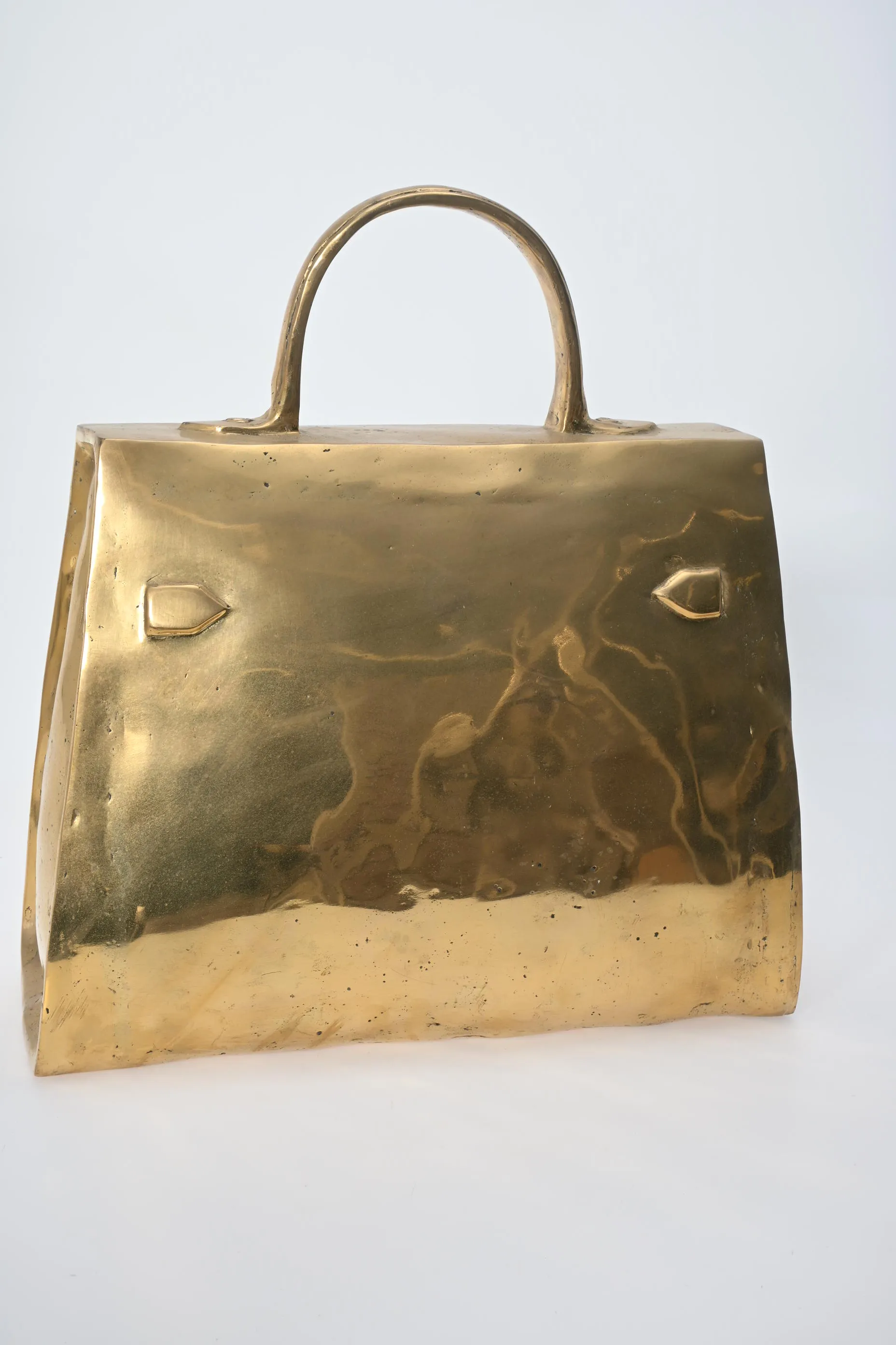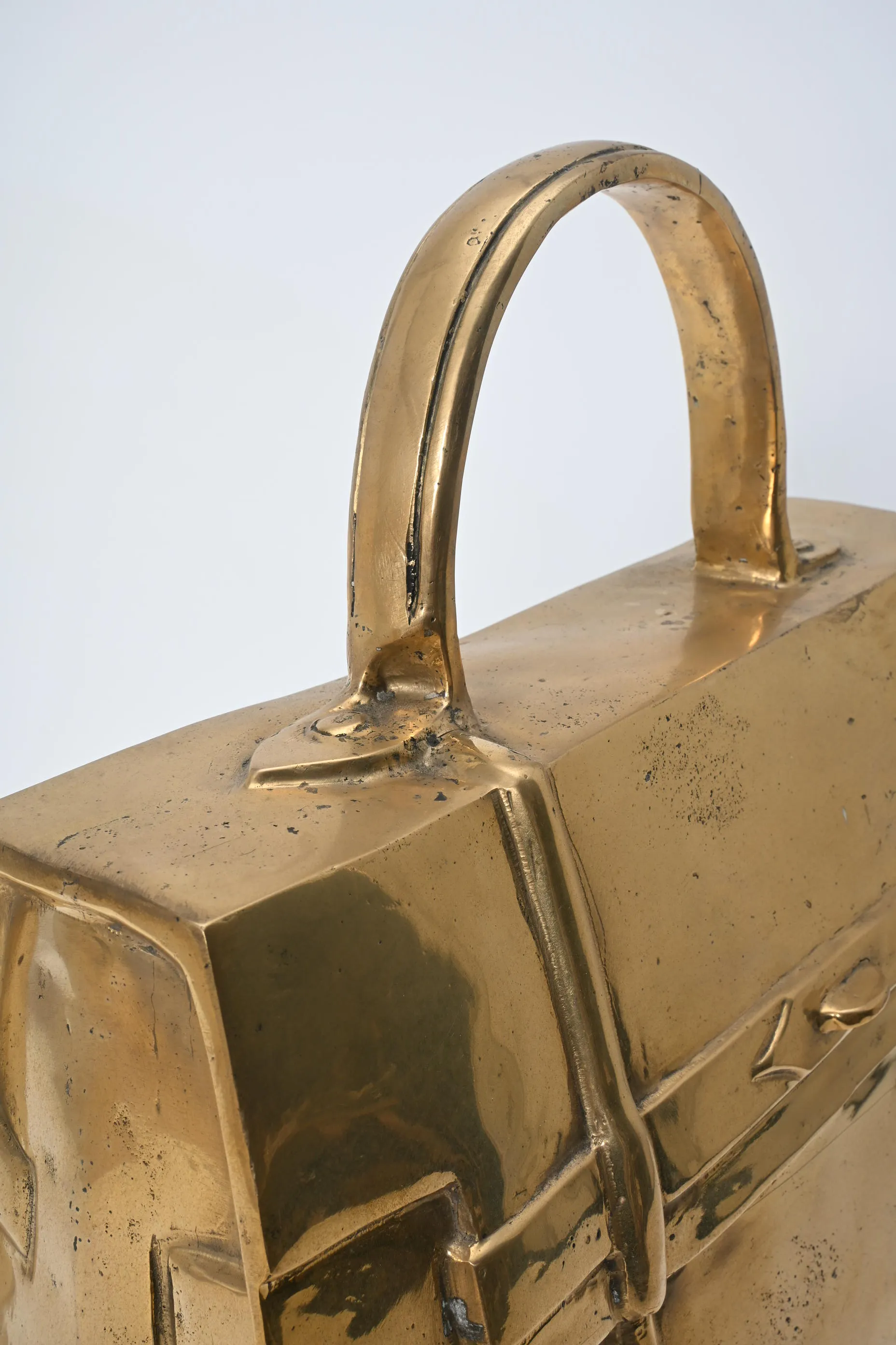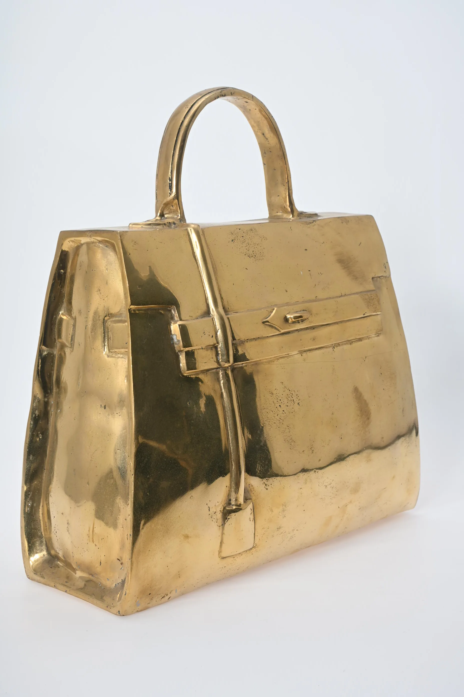 390. Skulptur, Väska efter "Hermes Kelly" Guldpatinerad brons