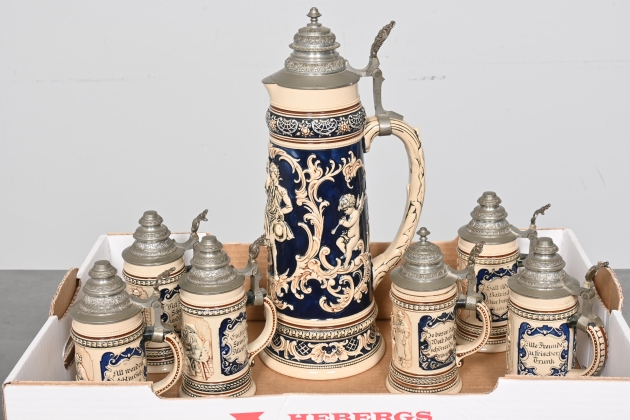 Visning: Torsdag 26/3 Kl 16-19 Lördag 28/3 11-14. Utlämning Söndag 29/3 ca 13:15 till 19:30 Måndag 30/3 8-12 och 14-18 Tisdag 31/3 8-12 och 14-16____________________________________________________________________________________________________________________________________________________________________________________________________________- Lägsta möjliga bud är 100 kr. På alla klubbade priser tillkommer Köparprovision 10% och slagavgift på 40 kr per objekt (inklusive moms). Vissa konstföremål kan vara belagda med konstnärsavgift, s.k. Droit de Suite eller följerätt. Betalning och avhämtning av inropade objekt måste ske söndag eller måndagen efter auktionen. Magasineringsavgift kan tillkomma på föremål som inte avhämtas inom angiven tid. Föremål som är betalda och inte hämtade inom två månader skänkes till Lions eller säljes, överskottet efter lagringskostnad skänks till välgörande ändamål. Föremål som säljs på auktion är begagnade och säljs i befintligt skick. Det ankommer på köparen att undersöka föremålen och förvissa sig om skicket. Betalning Du kan betala med kort på "Mina Sidor" via din internetbank, eller med Swish, ange alltid kundnummer. Objektsbeskrivning Objektens beskrivning återspeglar Hebergs Auktioner uppfattning om objekten. Hebergs Auktioner ansvarar inte för skador som förbigåtts vid besiktningen. Hebergs Auktioner ansvarar inte för eventuella felaktigheter i katalogtexten. Bilder i katalogen är till för identifierings- syfte och återspeglar inte nödvändigtvis objektens kondition. Ändringar i katalogtext kan förekomma efter att katalogen tryckts/publicerats. Sent inkomna ändringar meddelas muntligen vid försäljningstillfället. Ur och tekniska föremål säljs som samlarföremål och Hebergs Auktioner kan inte garantera att de är i fungerande skick. Köparens undersökningsplikt gäller. Om Hebergs Auktioner efter begäran från köparen har lämnat en konditionsrapport om ett föremåls kondition skall uppgifterna endast behandlas som vägledning för köparen och befriar inte köparen från dennes undersökningsplikt. Lagen om 14 dagars ångerrätt vid auktionsköp gäller inte här där du har möjlighet att lämna bud på plats. Det framgår av distans- och hemförsäljningslagen ___________________________________________________________________________________________________________________________________________________________________________________________________________________________ Vi kan skicka mindre föremål som inte är ömtåliga med postnord det är postnords prislista över disk som gäller plus moms. Vi skickar inga möbler, tavlor, porslinsföremål, glasföremål m.m