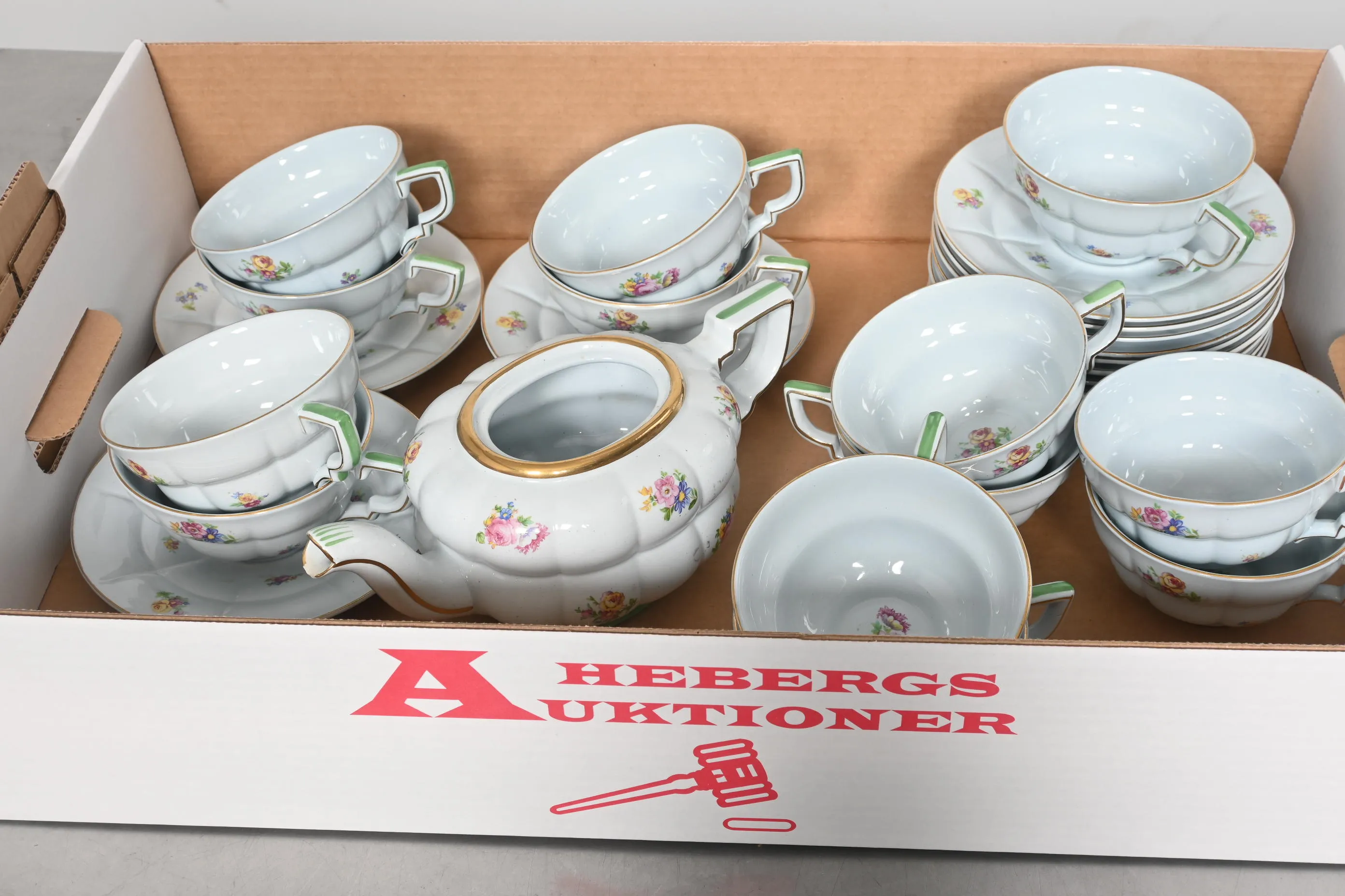 Visning: Torsdag 21/5 Kl 16-19 Lördag 23/5 11-14. Utlämning Söndag 24/5 ca 13:15 till 19:30 Måndag 25/5 8-12 och 14-18 Tisdag 26/5 8-12 och 14-16____________________________________________________________________________________________________________________________________________________________________________________________________________- Lägsta möjliga bud är 100 kr. På alla klubbade priser tillkommer Köparprovision 10% och slagavgift på 40 kr per objekt (inklusive moms). Vissa konstföremål kan vara belagda med konstnärsavgift, s.k. Droit de Suite eller följerätt. Betalning och avhämtning av inropade objekt måste ske söndag eller måndagen efter auktionen. Magasineringsavgift kan tillkomma på föremål som inte avhämtas inom angiven tid. Föremål som är betalda och inte hämtade inom två månader skänkes till Lions eller säljes, överskottet efter lagringskostnad skänks till välgörande ändamål. Föremål som säljs på auktion är begagnade och säljs i befintligt skick. Det ankommer på köparen att undersöka föremålen och förvissa sig om skicket. Betalning Du kan betala med kort på "Mina Sidor" via din internetbank, eller med Swish, ange alltid kundnummer. Objektsbeskrivning Objektens beskrivning återspeglar Hebergs Auktioner uppfattning om objekten. Hebergs Auktioner ansvarar inte för skador som förbigåtts vid besiktningen. Hebergs Auktioner ansvarar inte för eventuella felaktigheter i katalogtexten. Bilder i katalogen är till för identifierings- syfte och återspeglar inte nödvändigtvis objektens kondition. Ändringar i katalogtext kan förekomma efter att katalogen tryckts/publicerats. Sent inkomna ändringar meddelas muntligen vid försäljningstillfället. Ur och tekniska föremål säljs som samlarföremål och Hebergs Auktioner kan inte garantera att de är i fungerande skick. Köparens undersökningsplikt gäller. Om Hebergs Auktioner efter begäran från köparen har lämnat en konditionsrapport om ett föremåls kondition skall uppgifterna endast behandlas som vägledning för köparen och befriar inte köparen från dennes undersökningsplikt. Lagen om 14 dagars ångerrätt vid auktionsköp gäller inte här där du har möjlighet att lämna bud på plats. Det framgår av distans- och hemförsäljningslagen ___________________________________________________________________________________________________________________________________________________________________________________________________________________________ Vi kan skicka mindre föremål som inte är ömtåliga med postnord det är postnords prislista över disk som gäller plus moms. Vi skickar inga möbler, tavlor, porslinsföremål, glasföremål m.m