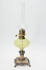 fot i ornamenterad metall och alabaster, oljehus i opalinglas, fint skick, funktionsduglig, höjd 55 cm
