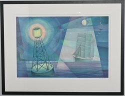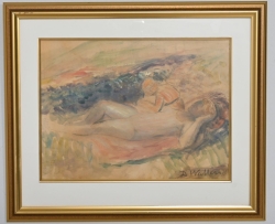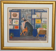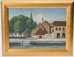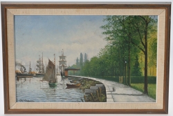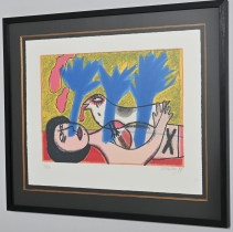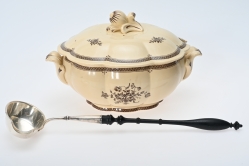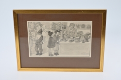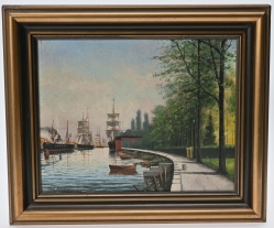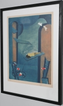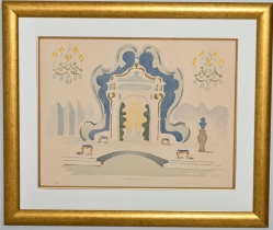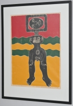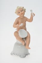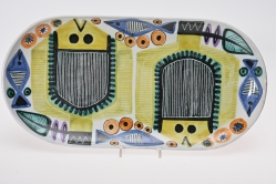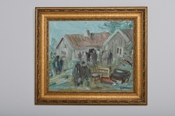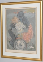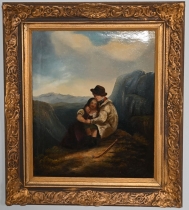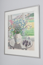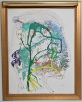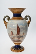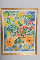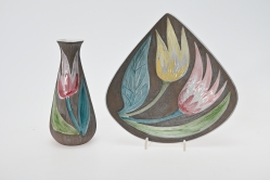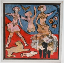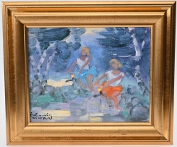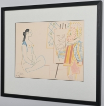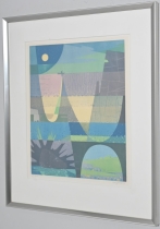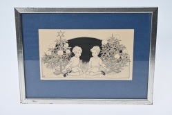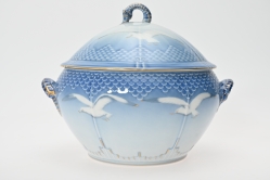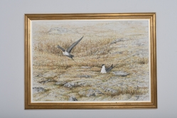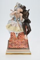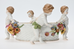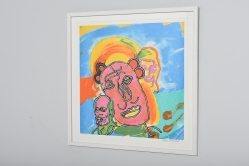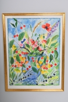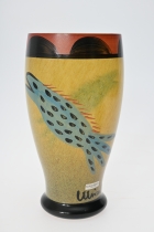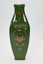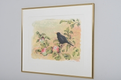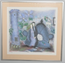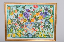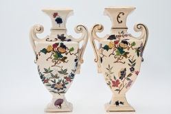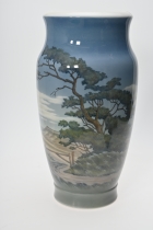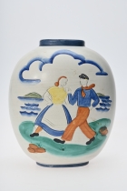 Målad dekor av figurer och fåglar signerad av Tashiro Monzaemon höjd 87 cm, kantlagning