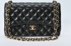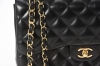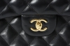 Axelremsväska i svart quiltat lammskinn med detaljer i förgylld mässing. Fodrad med burgundifärgat läder. Totalt sex innerfickor, varav en dragkedsförsedd samt ett ytterfack baktill. Märkt "CHANEL PARIS" på låset, "CHANEL MADE IN FRANCE". Nr 18462052