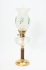 Fot i mässing med träkolonn, oljehus i slipat glas, kupa med målad dekor, bra skick, funktionsduglig, höjd 57 cm